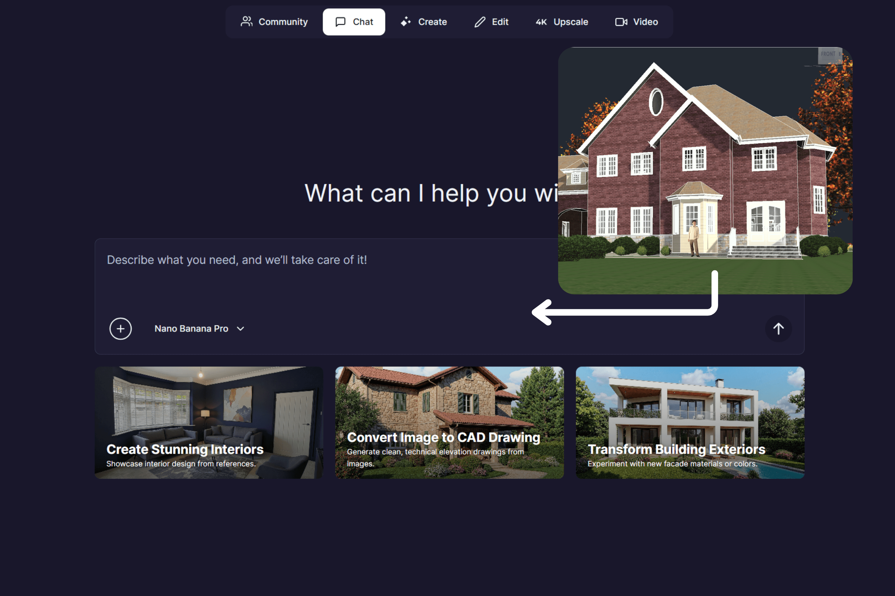 Upload to Rendair. Generate multiple style options in seconds.