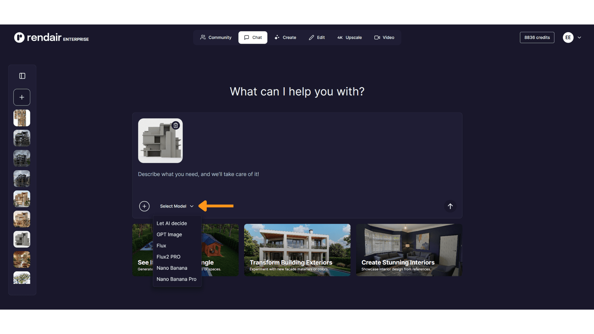 Step 1: Open Rendair AI and Go to Chat