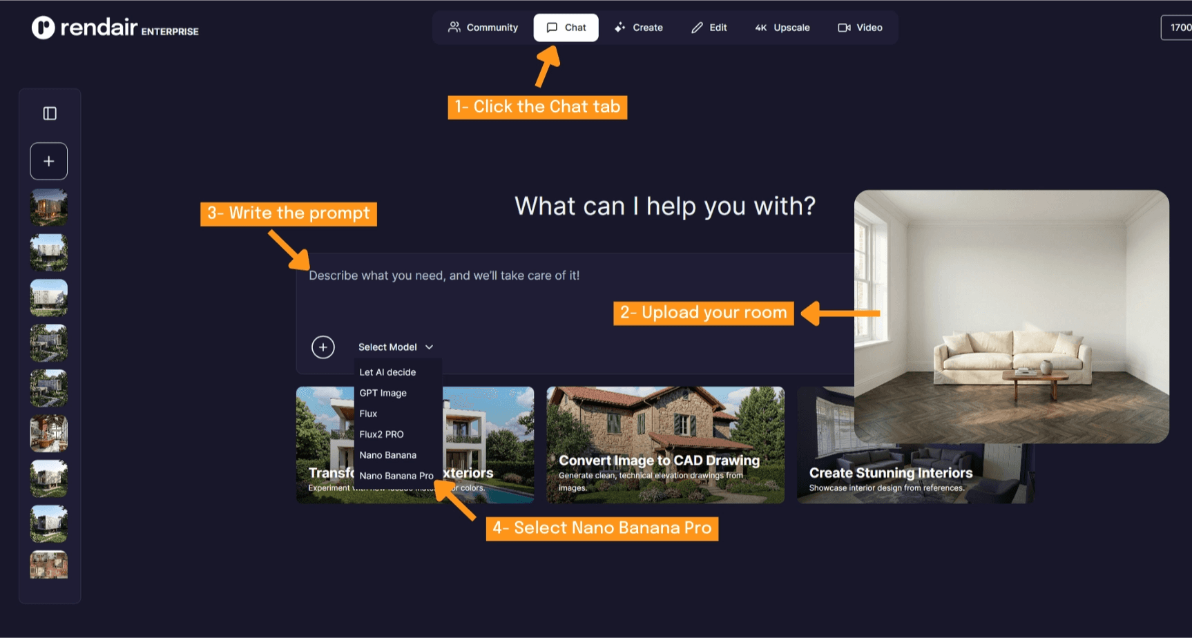 ๐ก Pro Tip: Upload a photo of your own room to the Rendair Chat Tool, select your favorite style, and enter the prompt. Watch as your space is reimagined in ways you never thought possible!