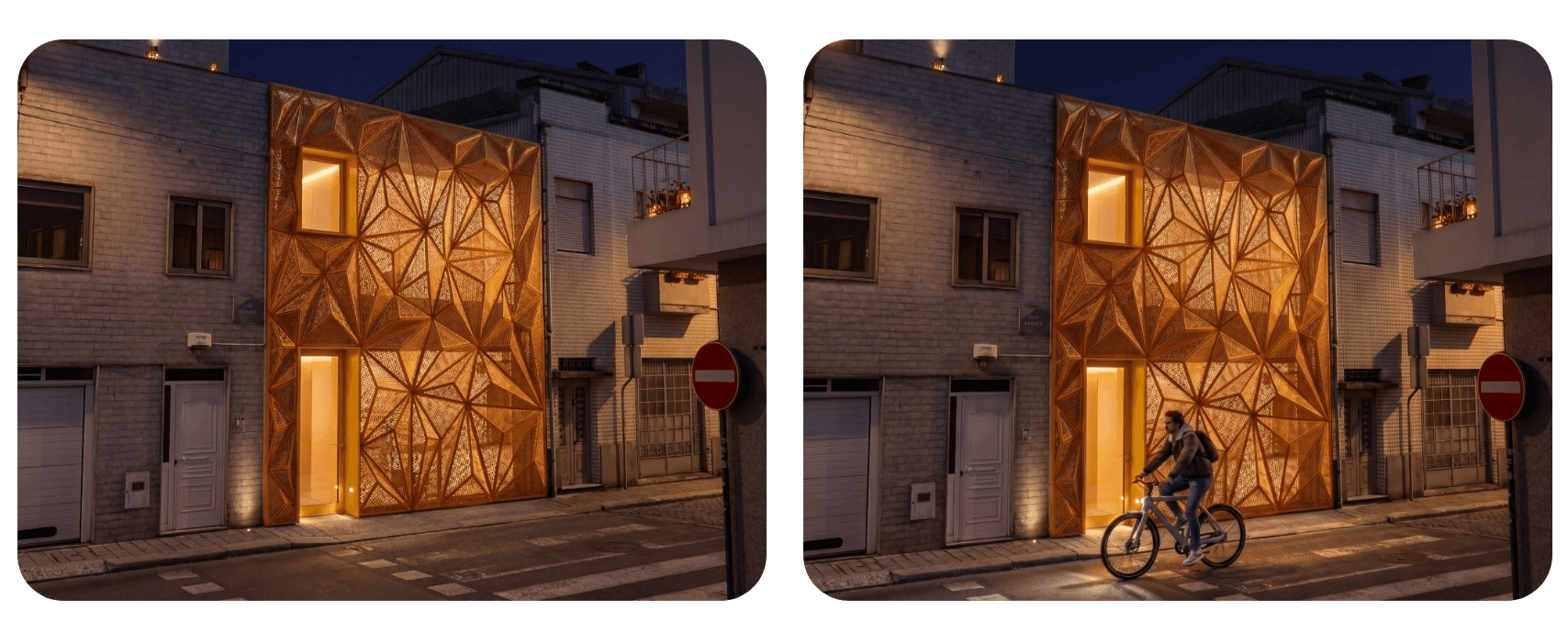 With the base image, it is possible to generate images from many different angles. Moreover, the details of our building and the entire context will remain exactly the same.