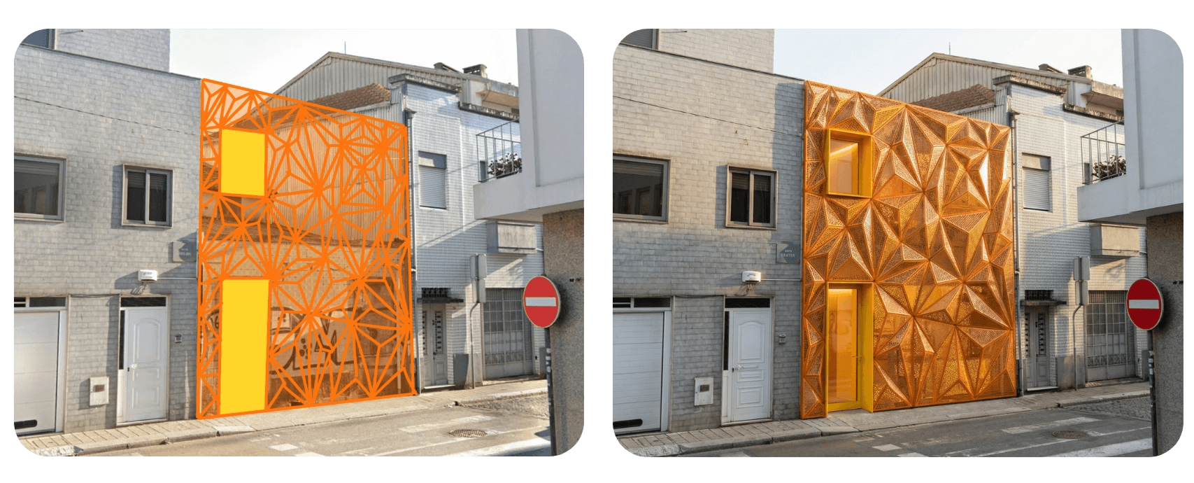Turn the sketch you made over the street photo into a realistic building using the sketch tool or chat. The street view remains exactly the same, but your building will shine!