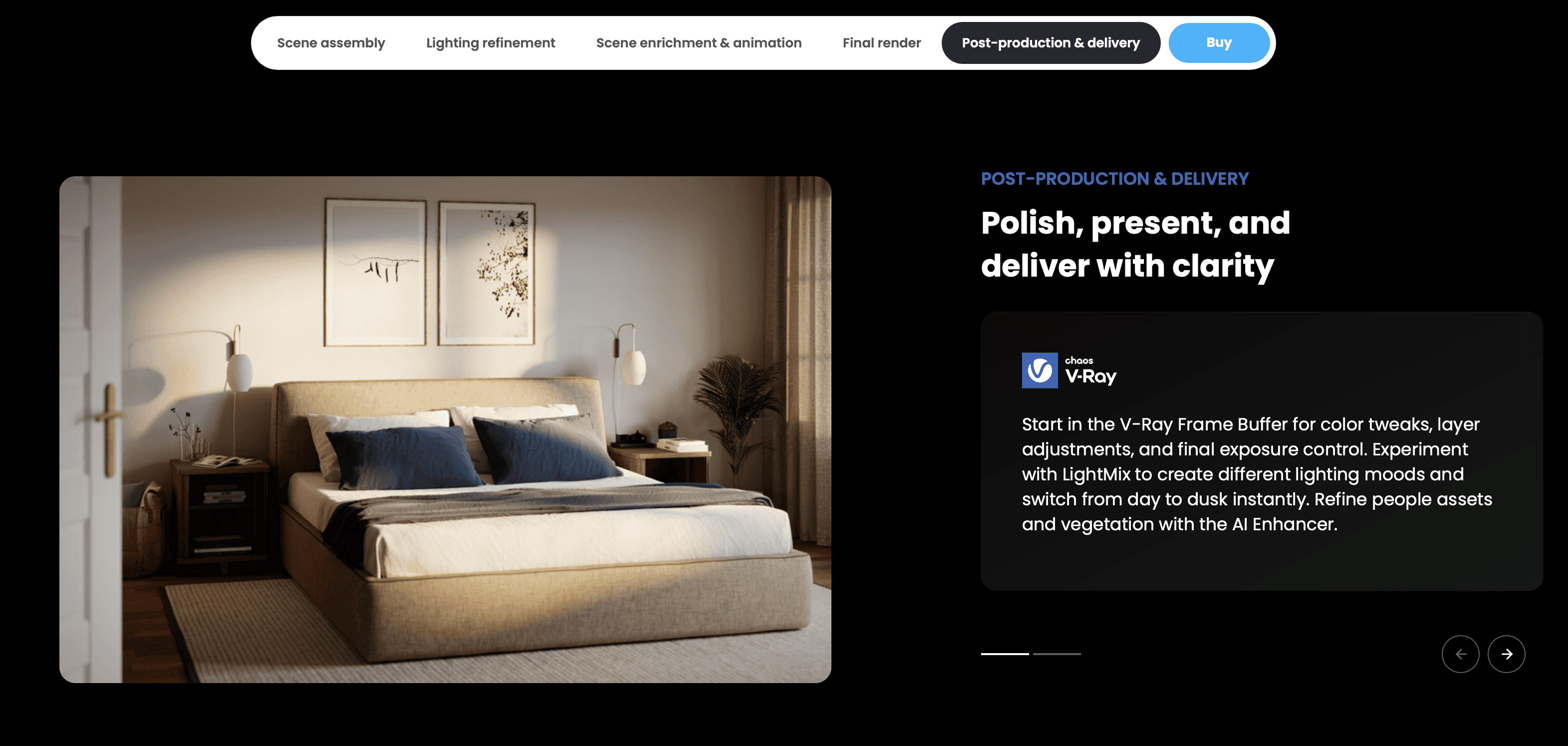 Production Control: It gives artists granular control over every aspect of the render (samples, rays) to balance quality vs. speed.