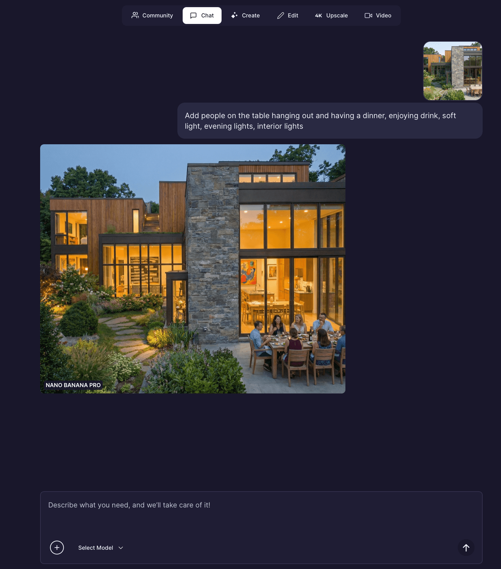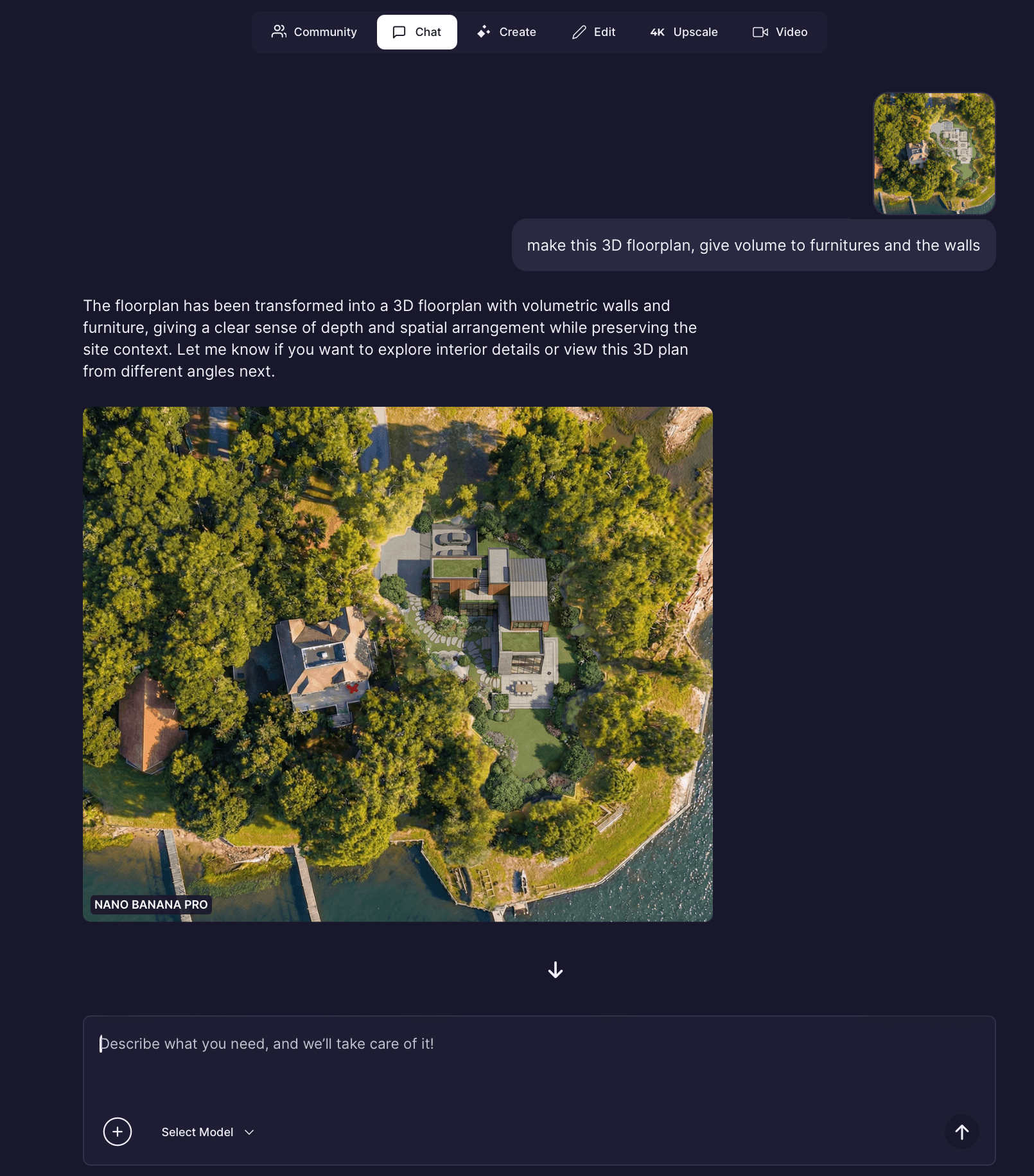 The key is iteration. Upload, prompt, refine, and generate again. Each step builds on the previous one, allowing you to move quickly from idea to realistic visualization.