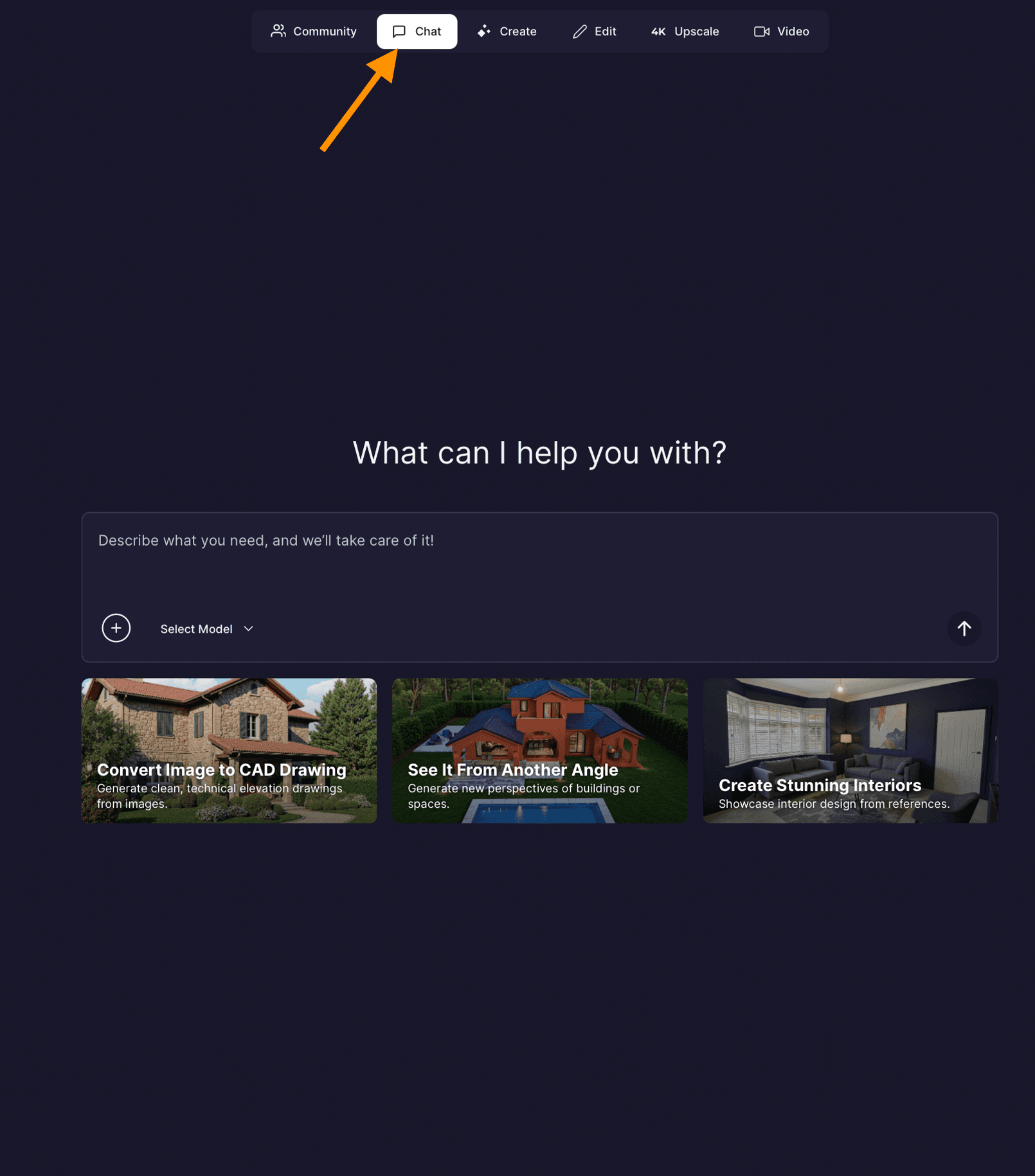 Step 2: Open Rendair AI and Go to Chat