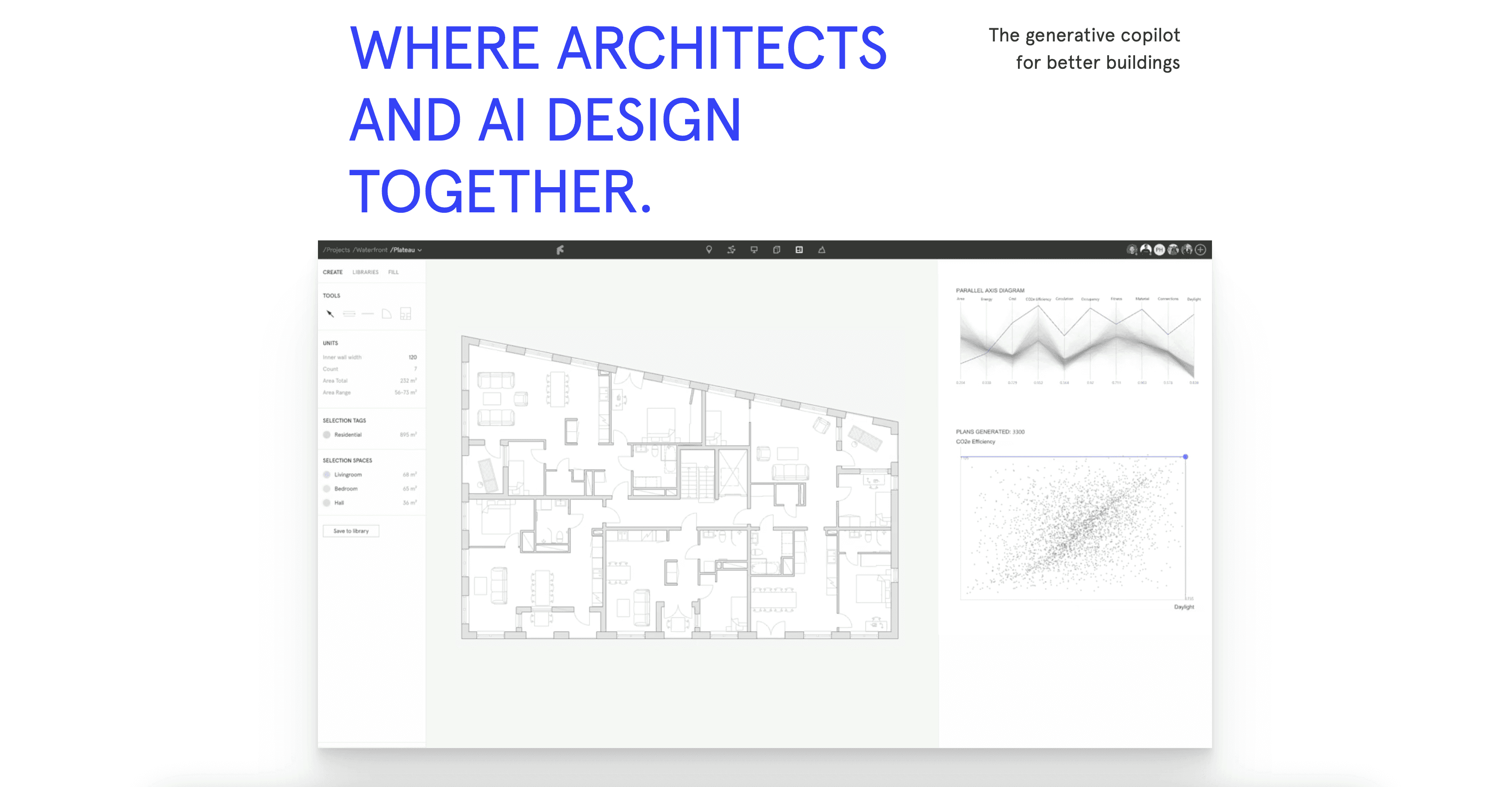 Generative Layouts: Automatically generates multiple floor plan variations that fit within your boundary lines.
