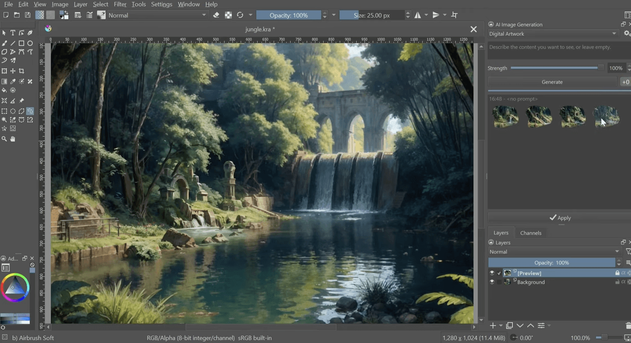 A plugin that integrates Stable Diffusion directly into Krita, allowing for inpainting, outpainting, and generation on your local machine.