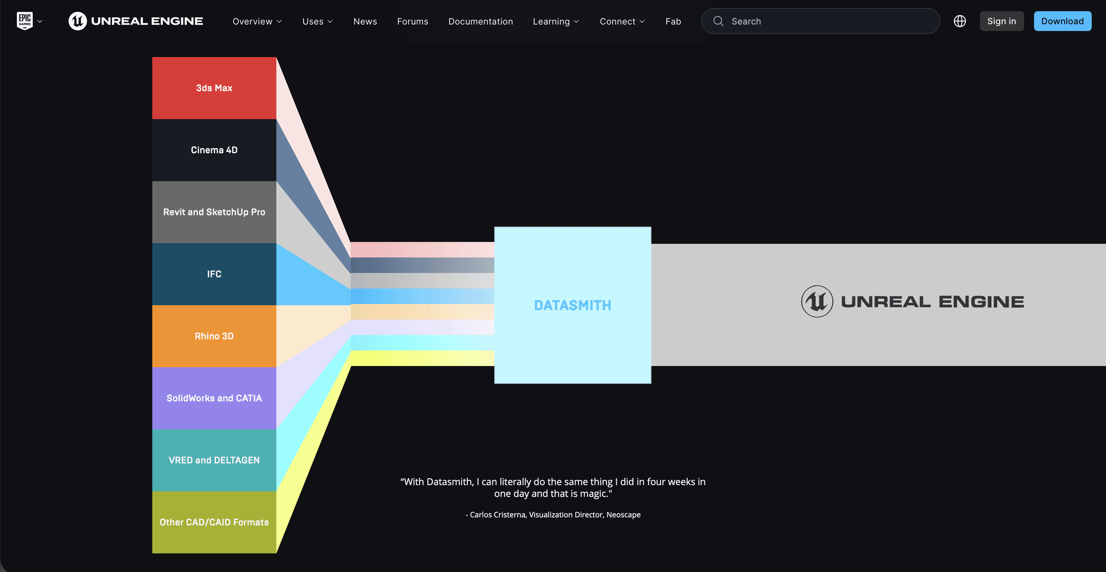The official bridge that translates CAD and BIM data (Revit, Rhino, SketchUp, 3ds Max) into Unreal Engine assets without losing metadata or hierarchy.