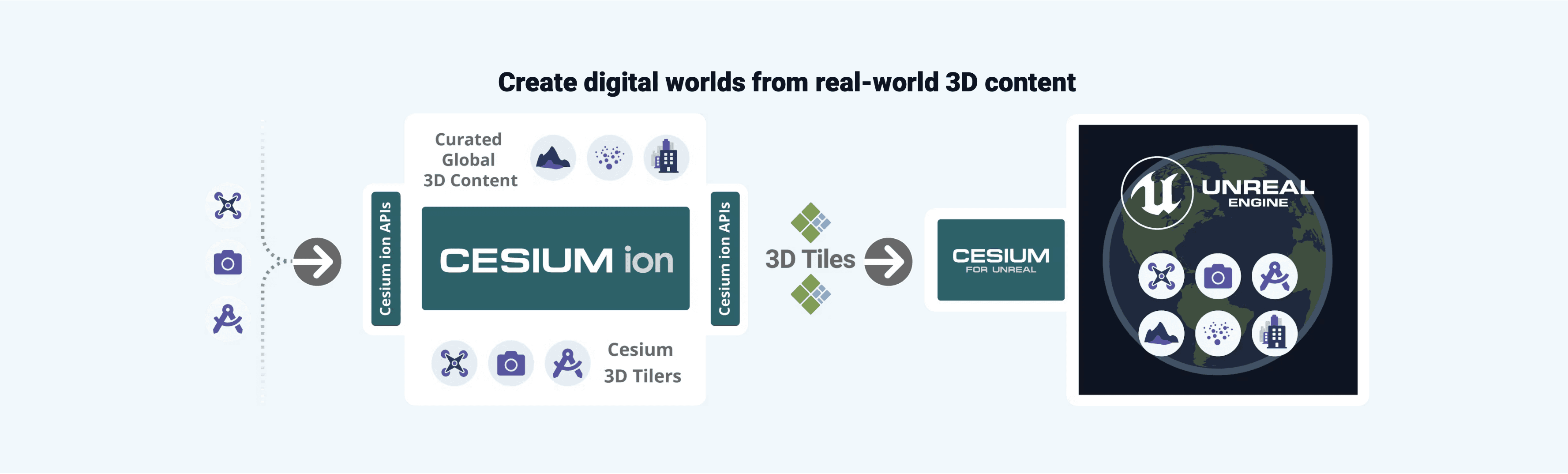Streams high-resolution, real-world 3D geospatial data (terrain, satellite imagery, and 3D buildings) directly into your engine.