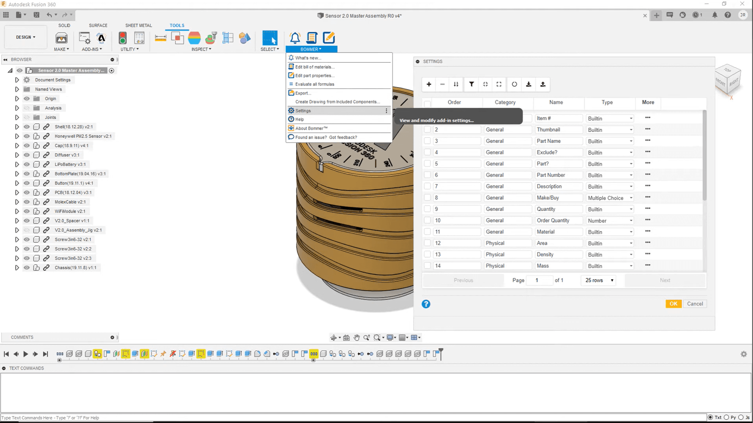 Builds and manages custom Bills of Materials (BOM) directly within the Fusion 360 interface.