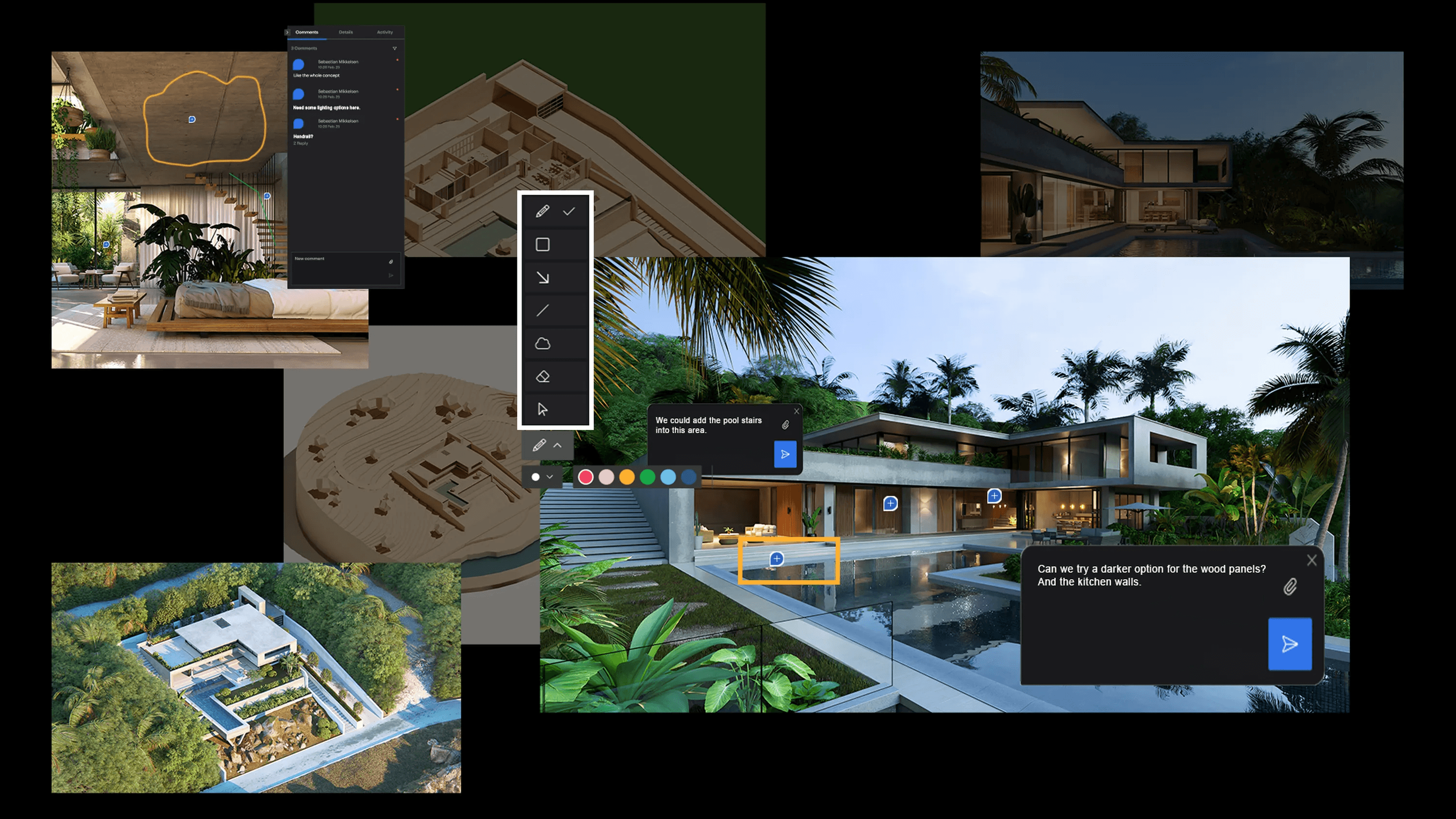 Tienes una reunión en 24 horas. El diseño sigue cambiando. Necesitas cinco tomas interiores y un vídeo de recorrido aéreo. Lumion te permite actualizar el modelo al instante, añadir mobiliario e iluminación rápidamente y renderizar el vídeo durante la noche en una sola GPU decente.
