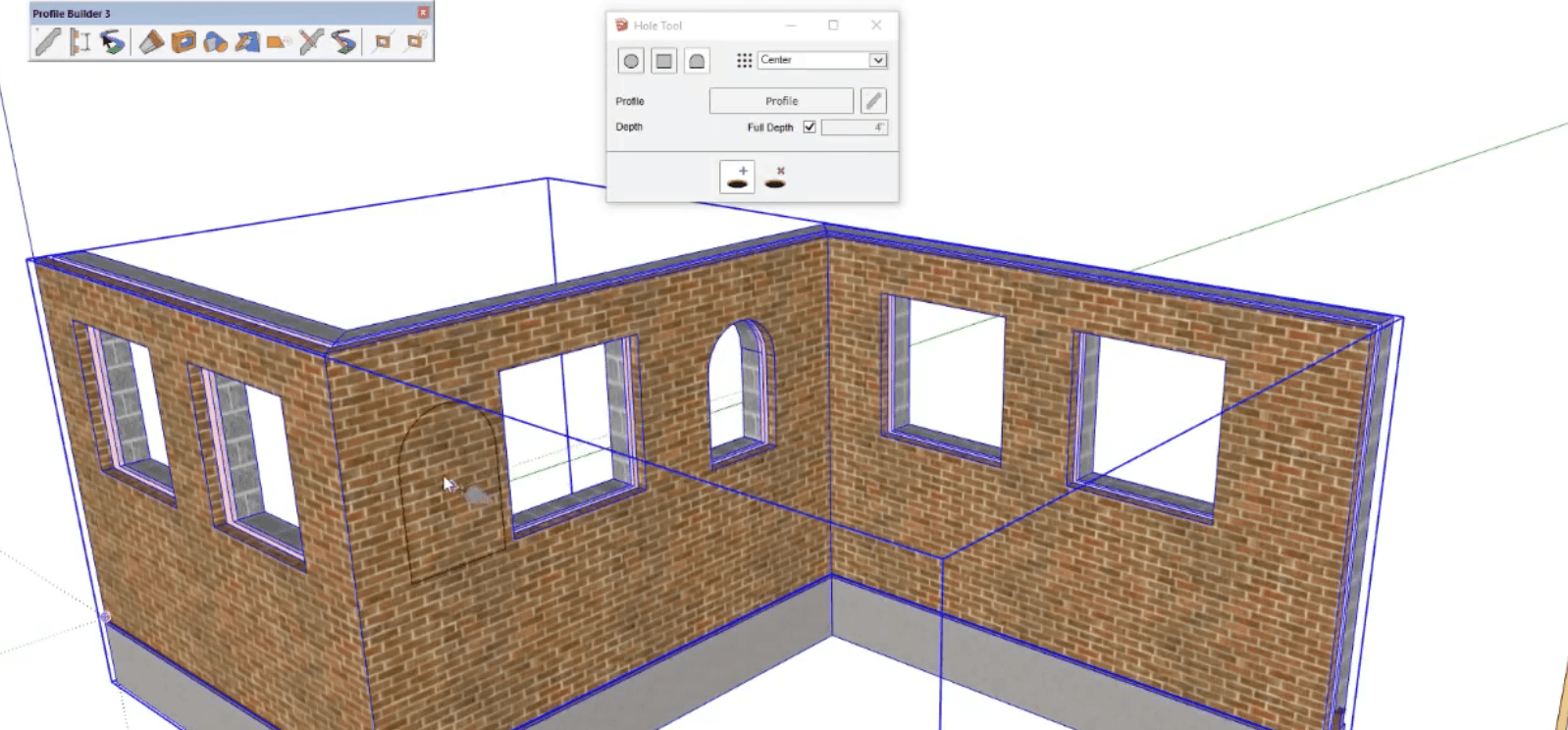 Why it matters: Moving a window in raw SketchUp usually means healing the geometry manually. FlexTools components snap to wall thickness and update openings automatically when moved or resized.
