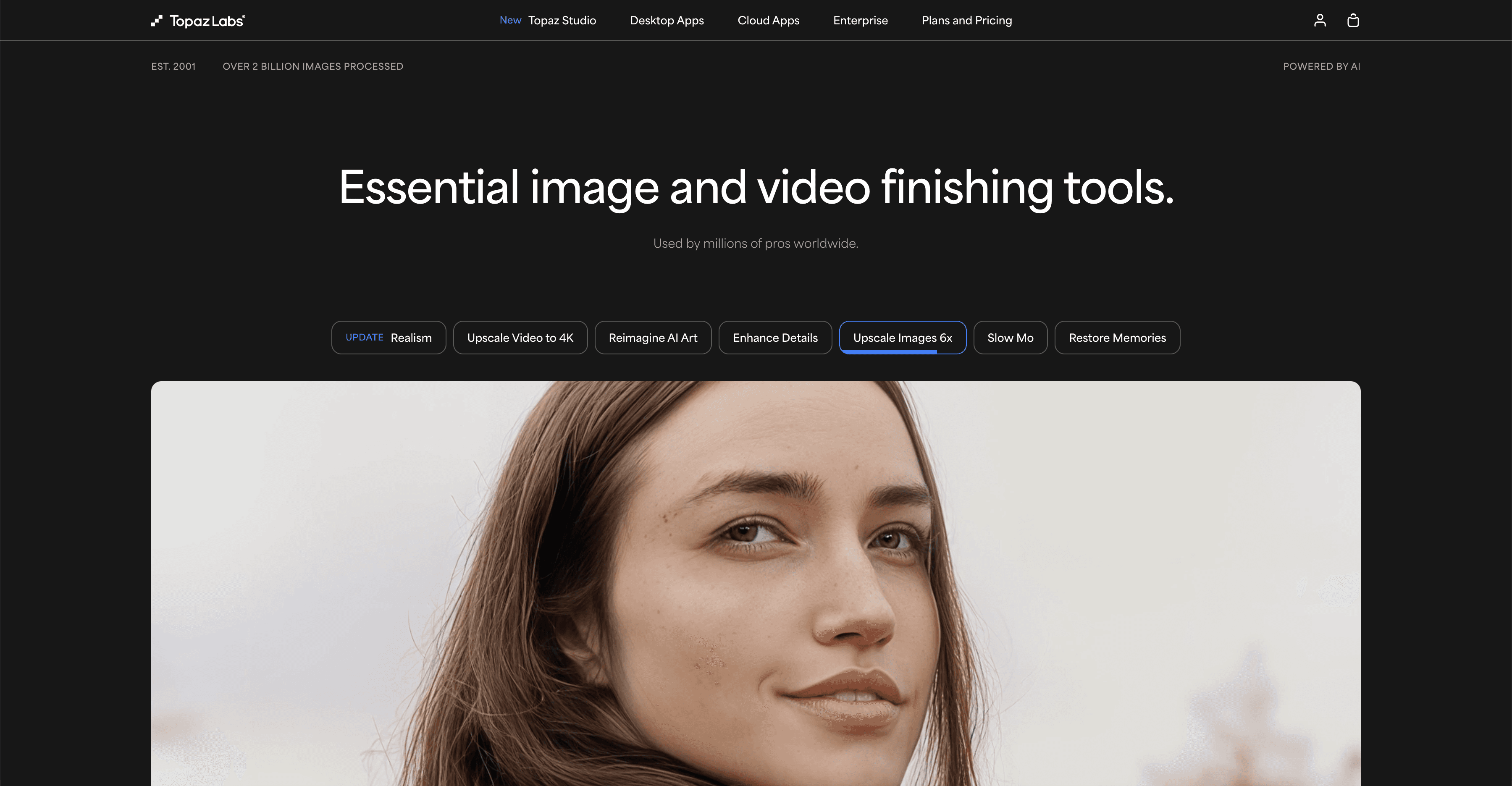 What it does: A suite of web-based AI tools for image enhancement, background removal, and sharpening.