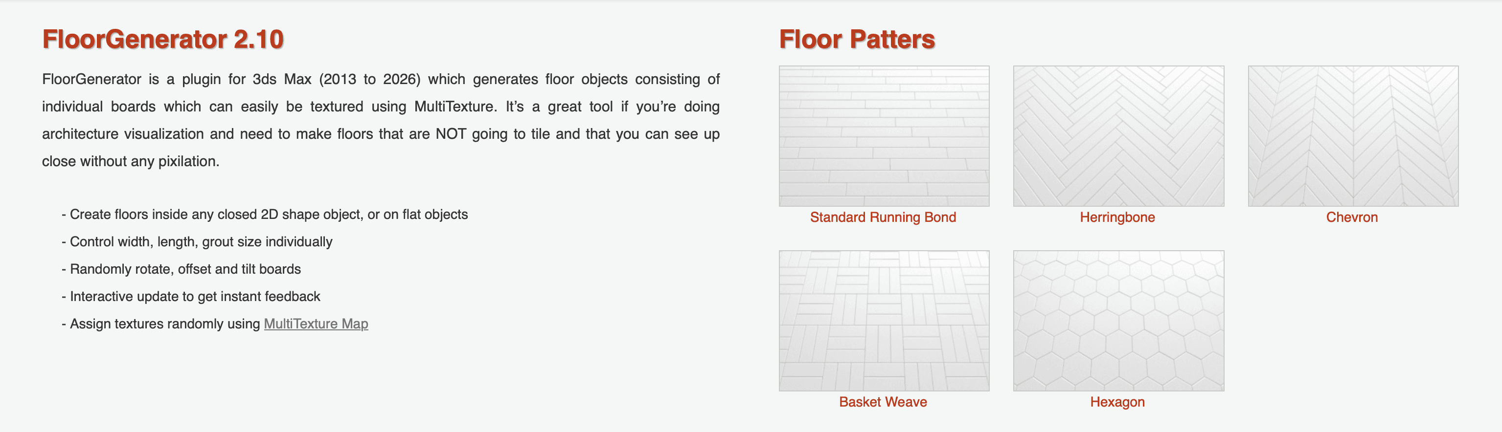 Generates actual 3D geometry for floorboards and tiles rather than relying on flat textures.