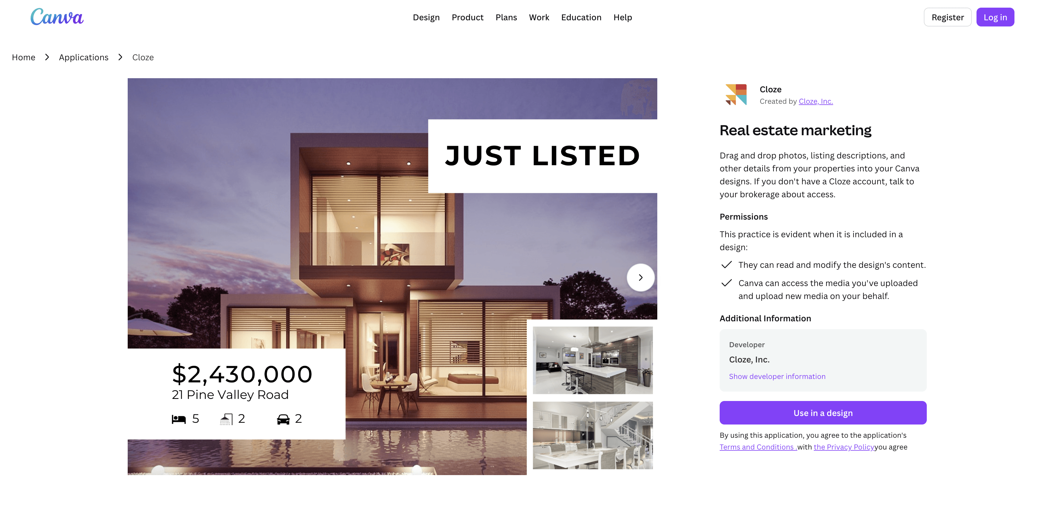 Se conecta directamente a datos MLS o sistemas CRM para poblar diseños automáticamente.