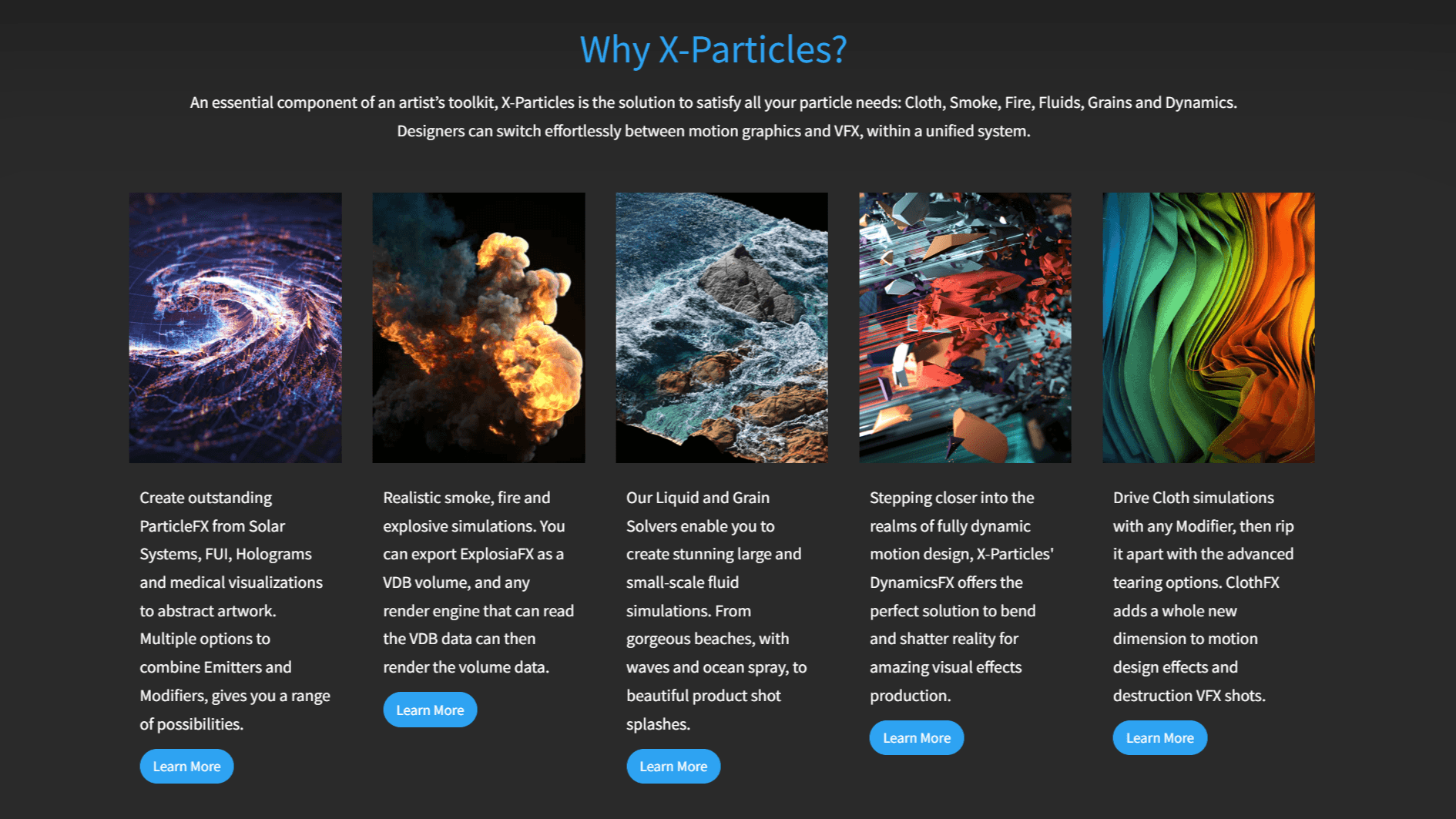 Un robusto sistema de partículas y VFX que reemplaza las herramientas de partículas nativas de C4D.