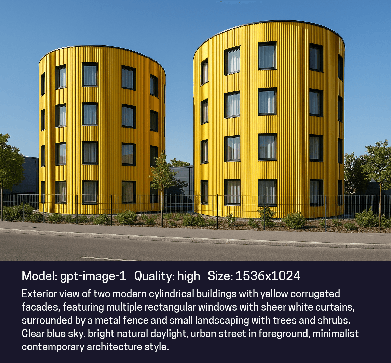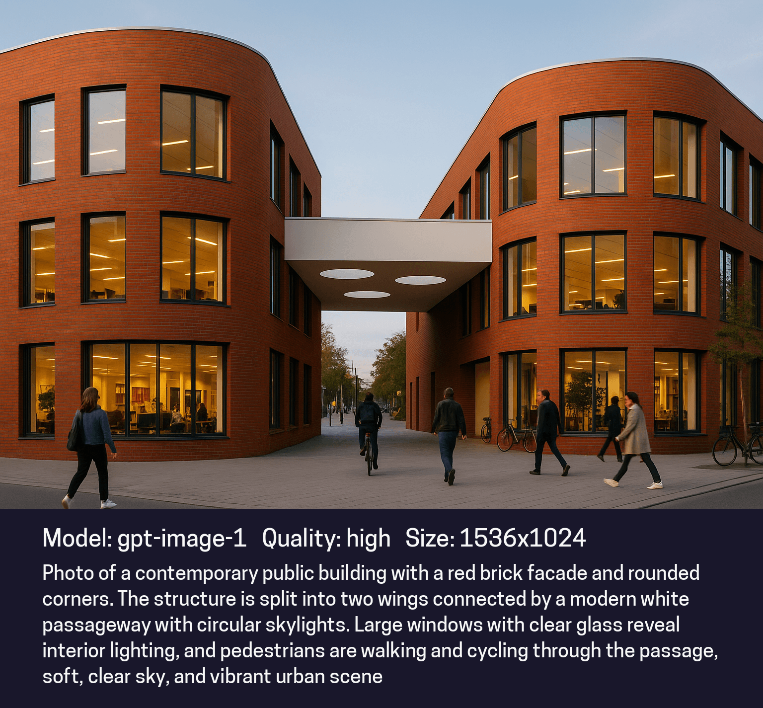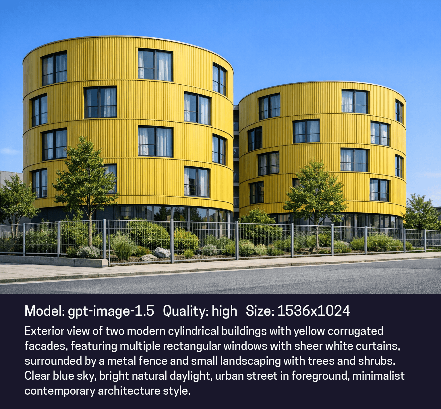 GPT-Image-1.5 successfully transferred the materiality (facade materials, style references) and the lighting mood without trying to copy the elements from the reference image. It separates style from structure much more effectively.