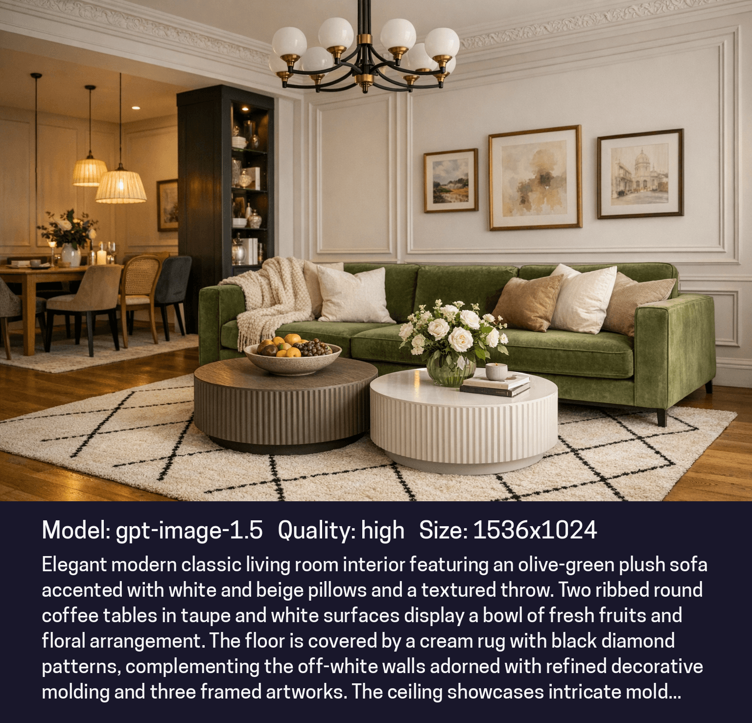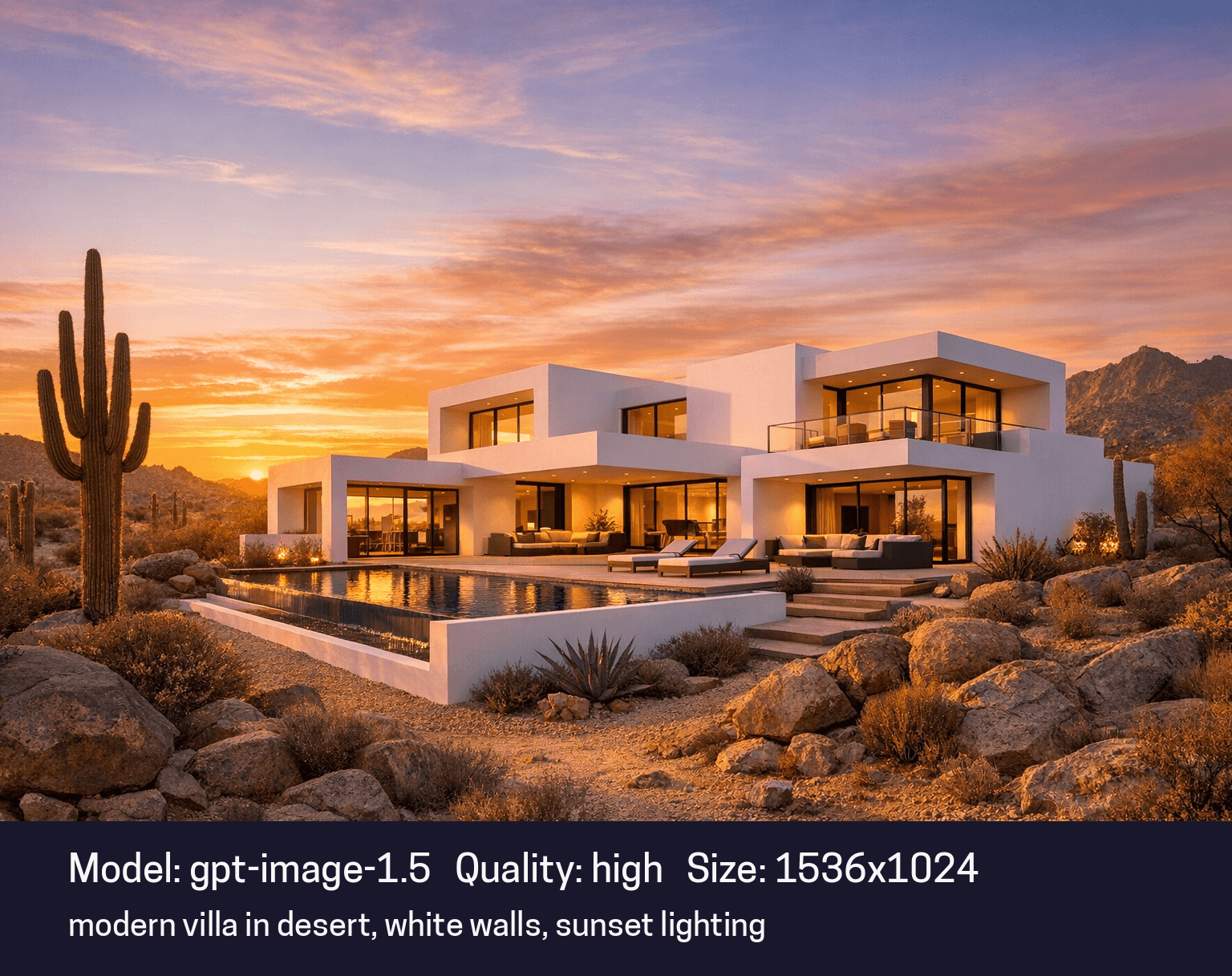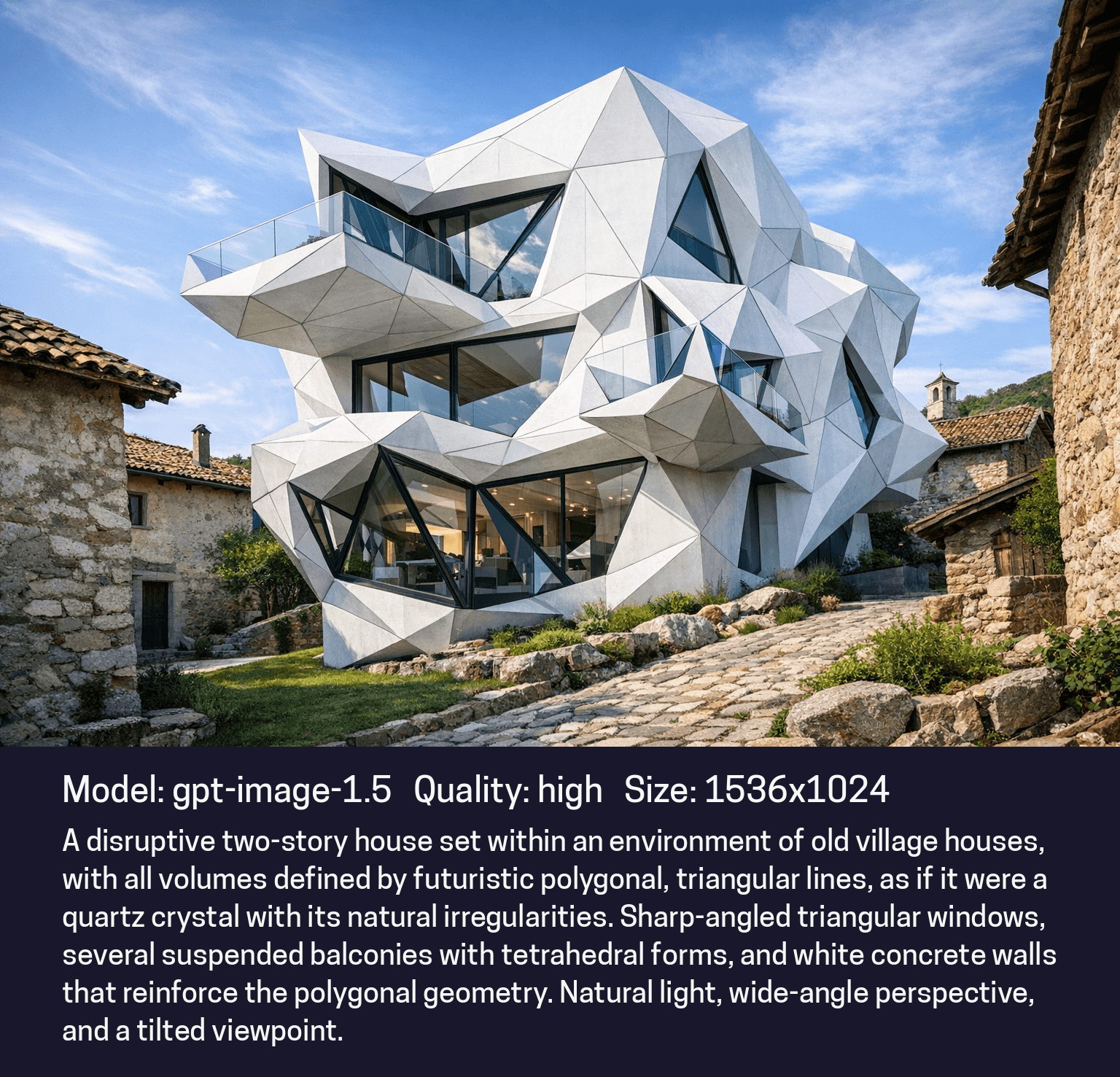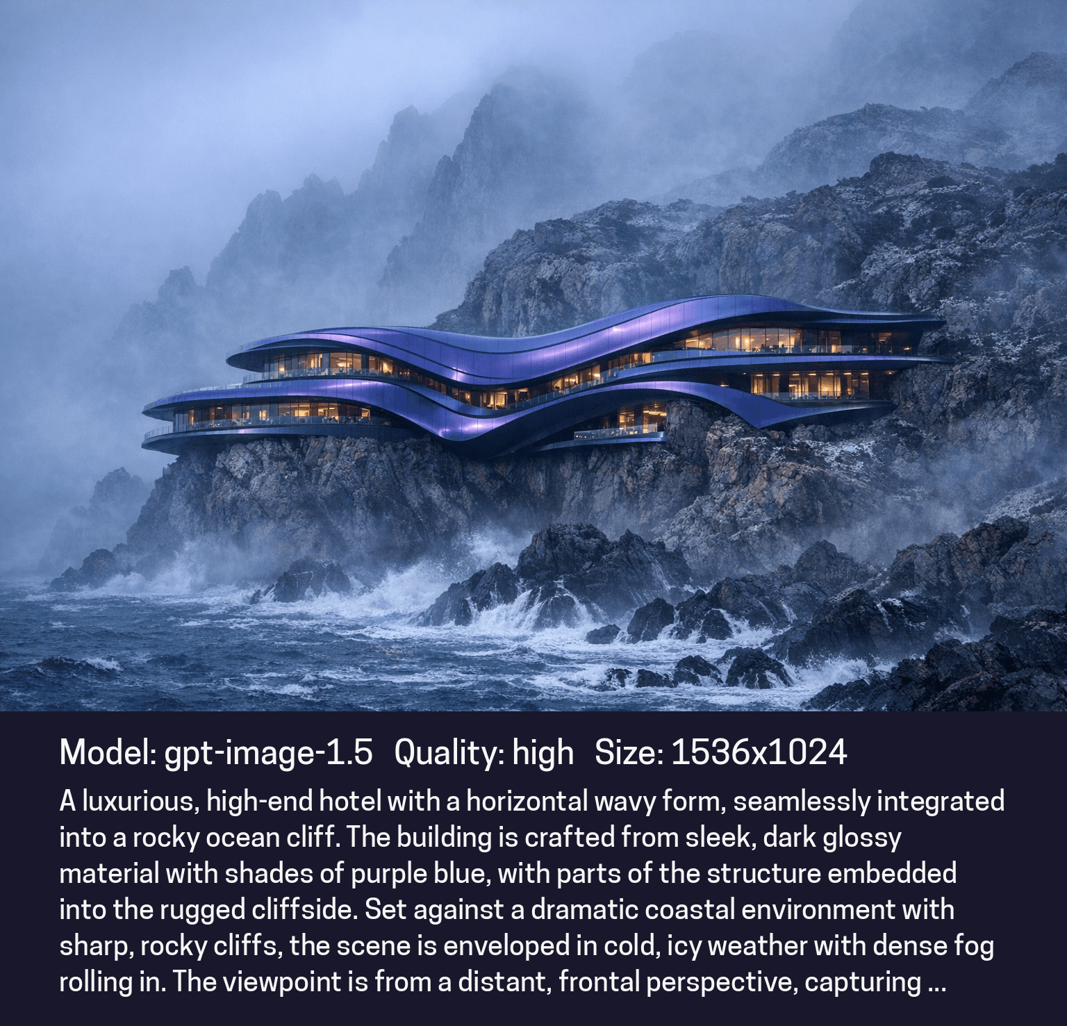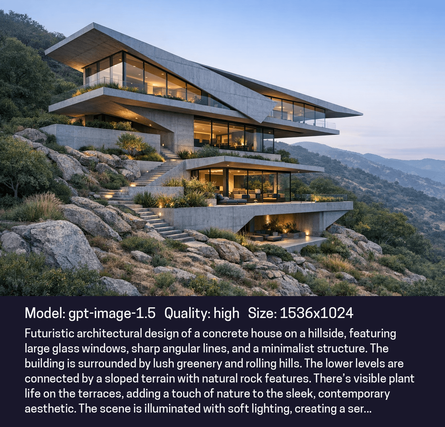 GPT-Image-1.5 corrects this. The lighting is now neutral, crisp, and true to professional photography standards. Whether you need a cool Nordic morning or a stark commercial interior, the model respects the requested atmosphere without forcing a default temperature on your work.