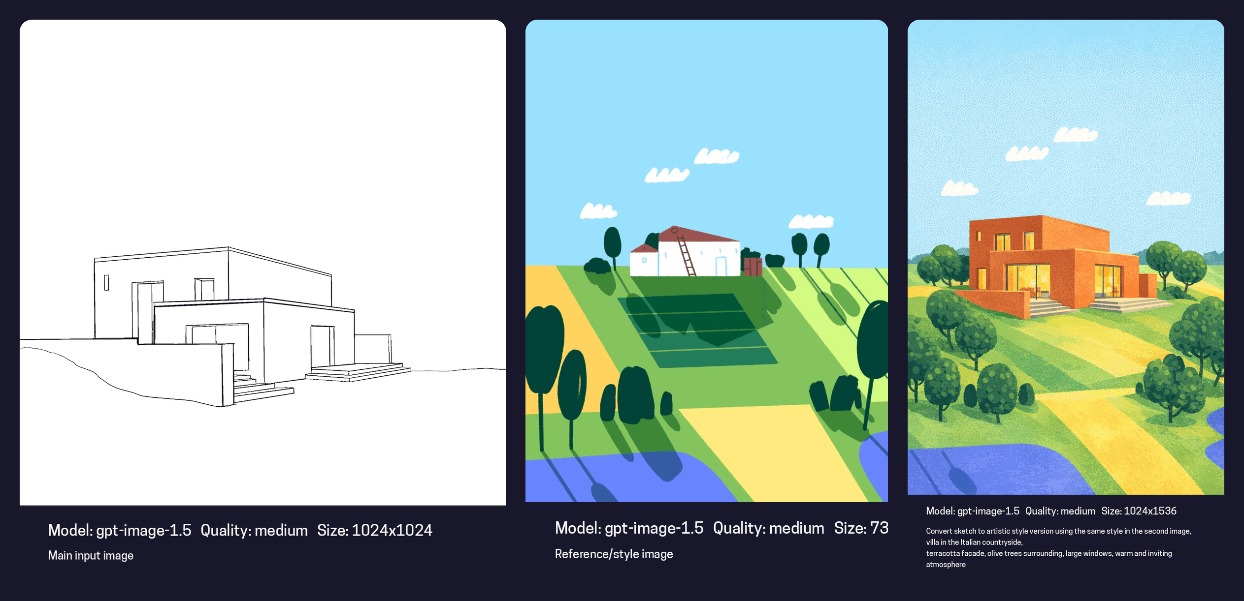 In our tests, GPT-Image-1.5 showed a remarkable ability to separate these two inputs. It applies the material and mood of your reference image strictly to the geometry of your base image. It doesn't try to mash the shapes together anymore, it simply "skins" your design with the new style.