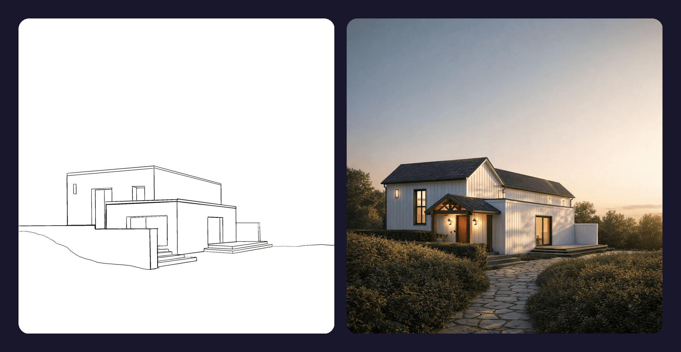 Getting the "vibe" right is usually the hardest part of prompting. With the expanded input capacity, you can now upload a specific "Mood Board" and ask Rendair to apply that exact style to your geometry.