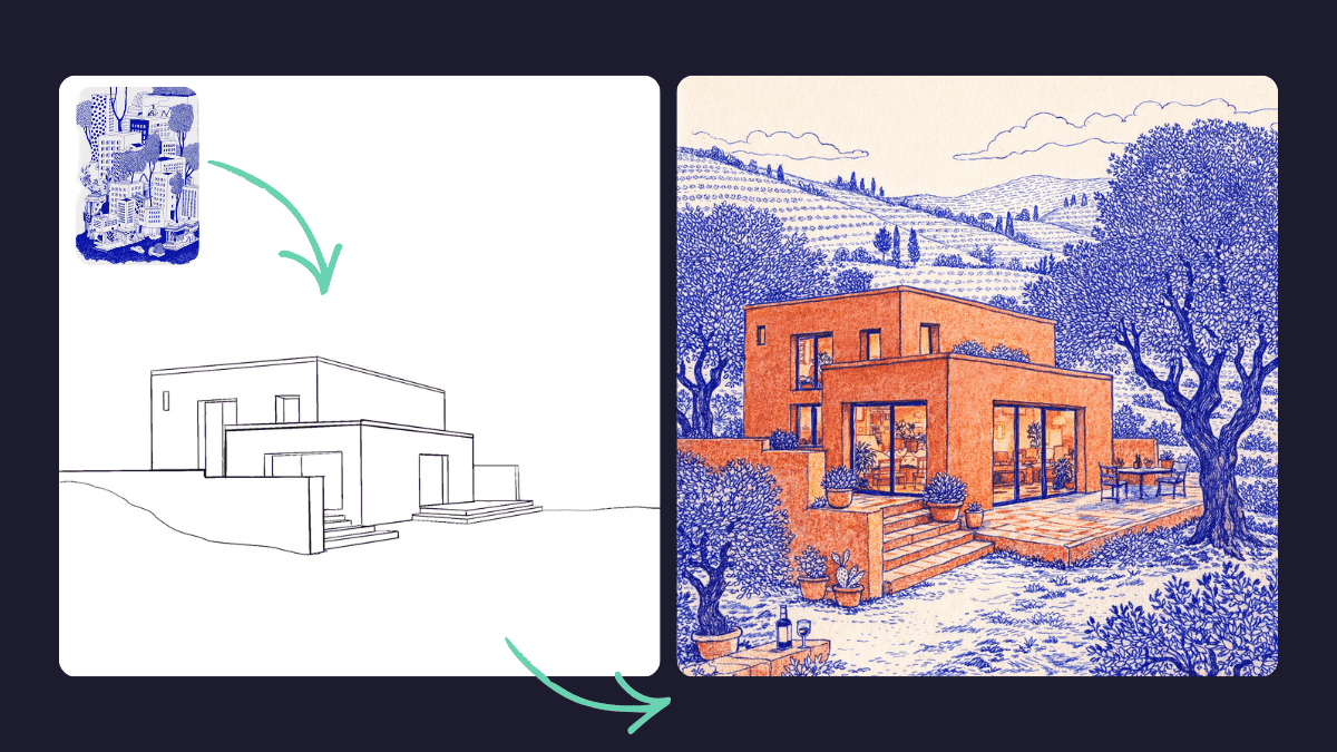 One of the most powerful features of GPT-Image-1.5 in Rendair is its ability to accept up to 16 input images. This allows you to provide a base sketch alongside multiple style references.