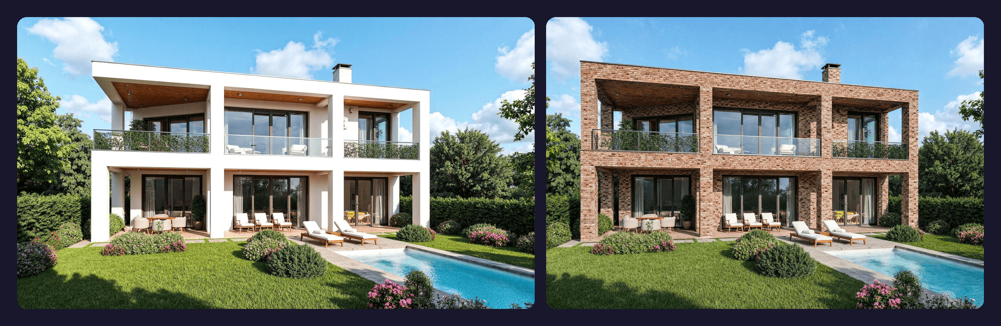 The model creates precise local edits. It keeps the lighting consistency of the original scene but alters only the requested pixels. This reliability allows for true design iteration, you can finally fine-tune a render rather than rolling the dice for a new one.