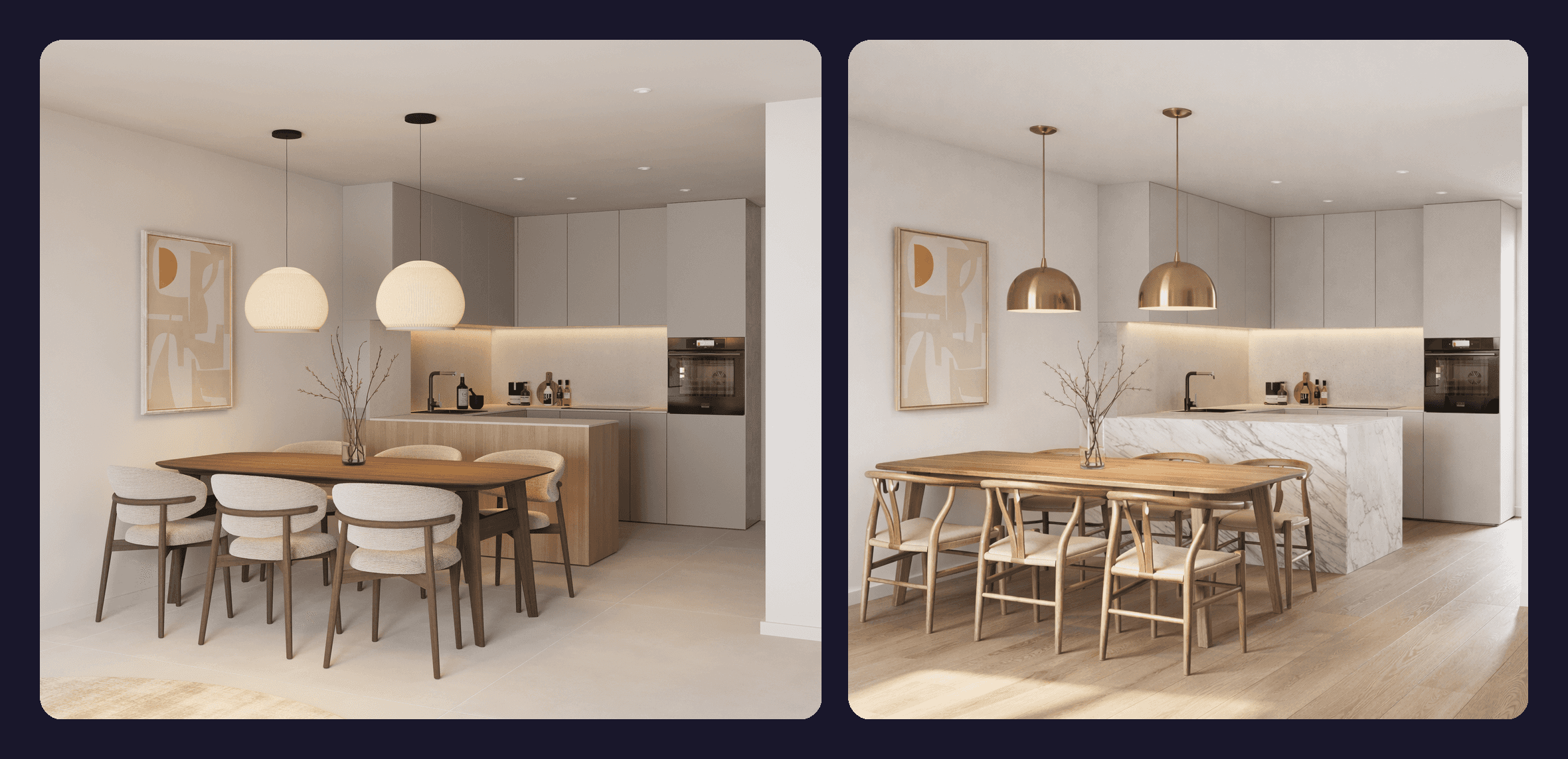 Previous image models often applied a warm, yellowish filter to renderings, making interiors look dated or lighting look artificial.