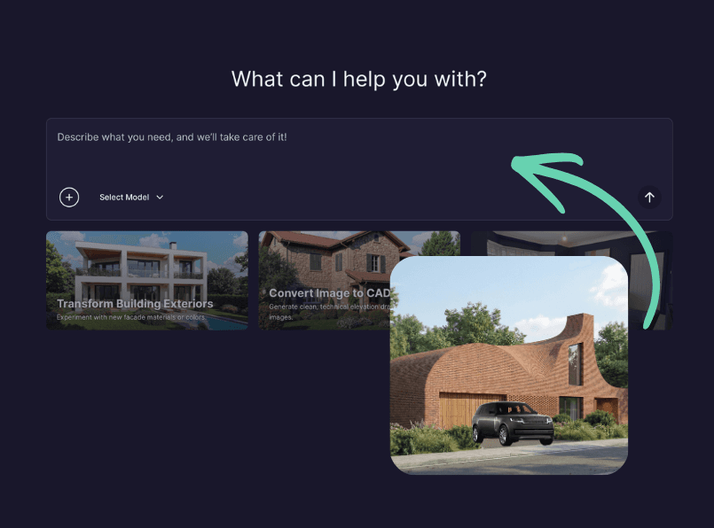 ¿Olvidaste agregar un coche o un árbol? No vuelvas a renderizar. Usa Rendair AI para insertar objetos tipo 3D en tu renderizado 2D con perspectiva y iluminación perfectas.