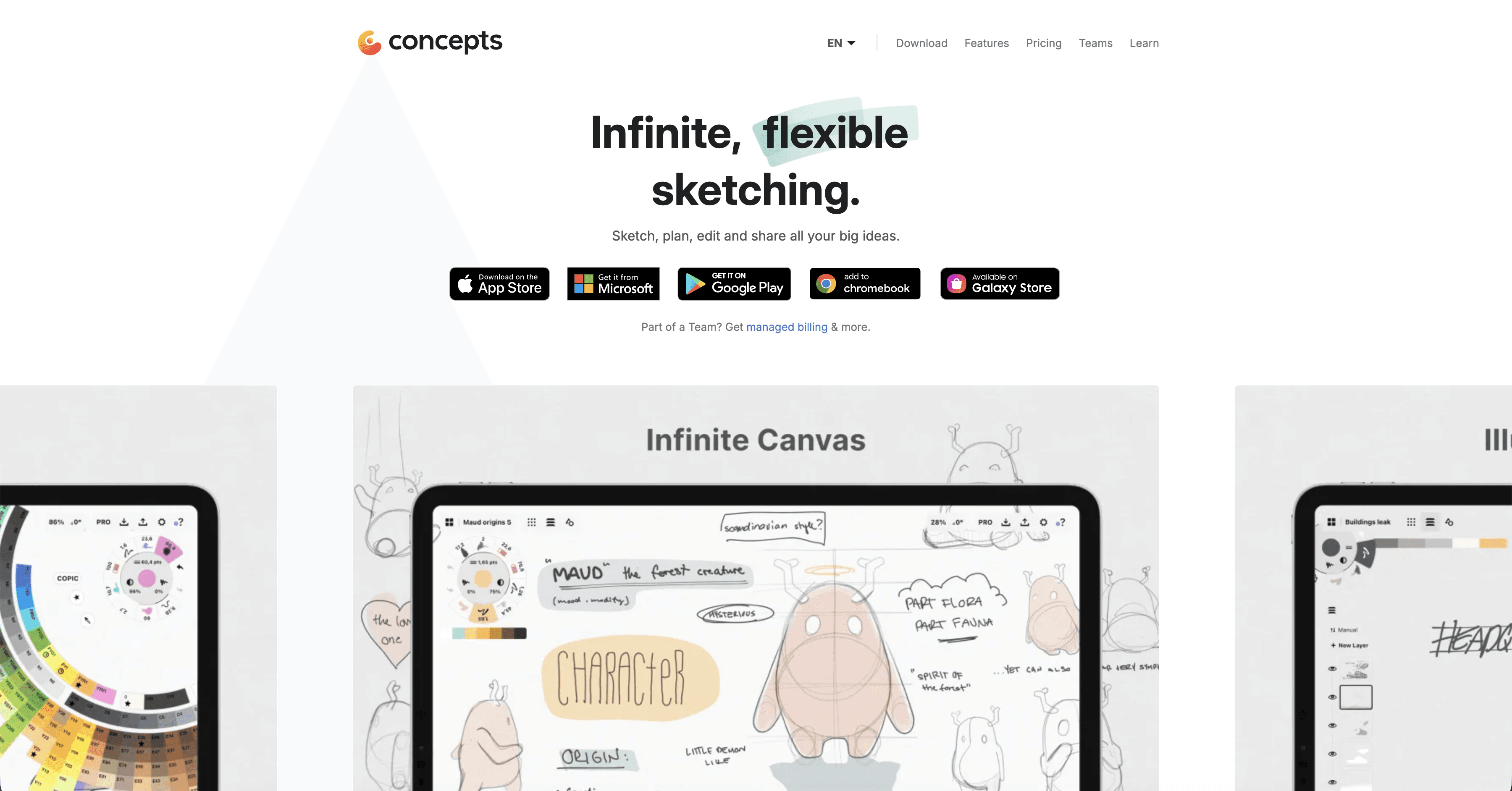 What it does: A streamlined, no-nonsense sketching app that focuses purely on the drawing experience without complex menus.