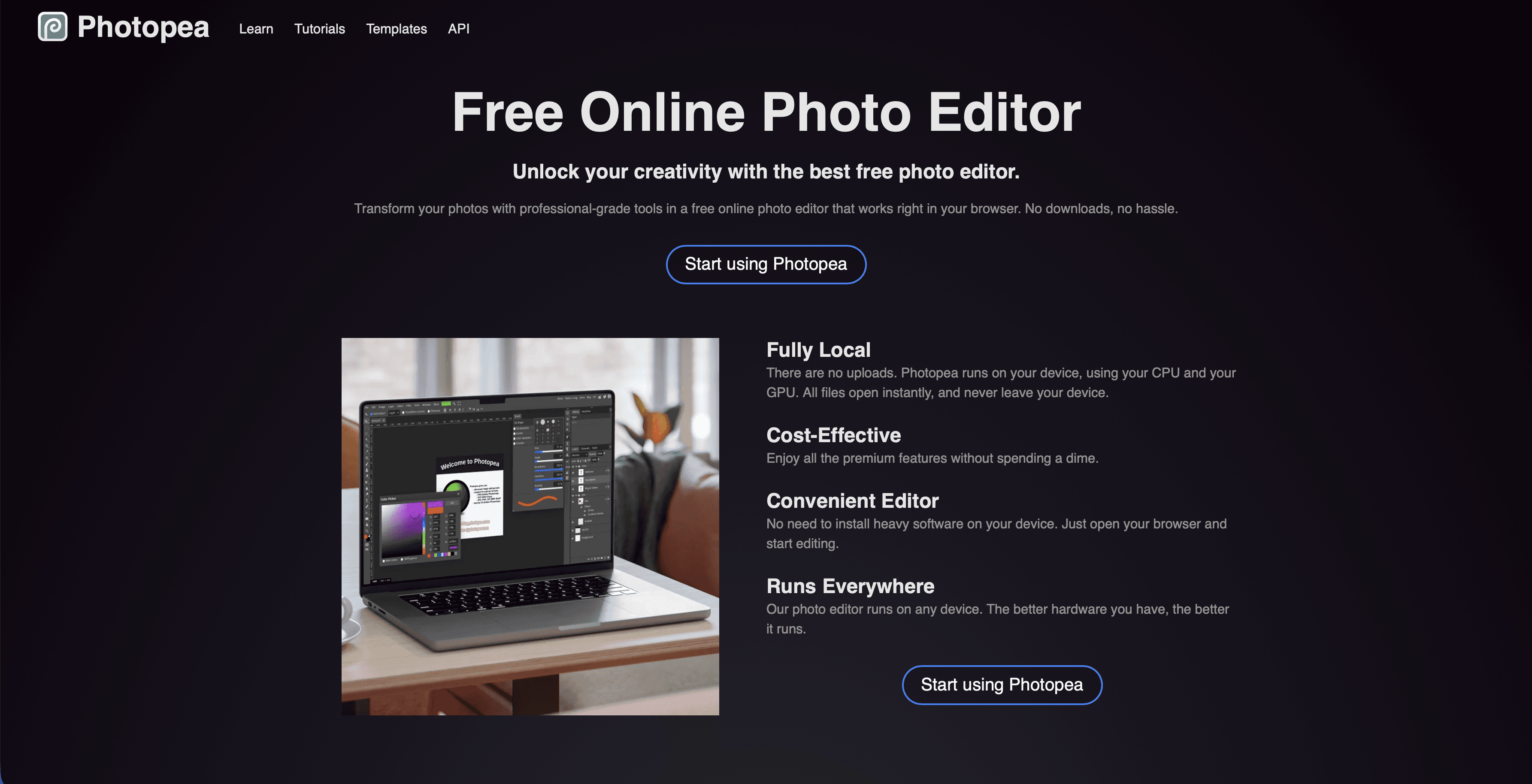 What it does: A browser-based clone of Photoshop that runs entirely in the cloud.