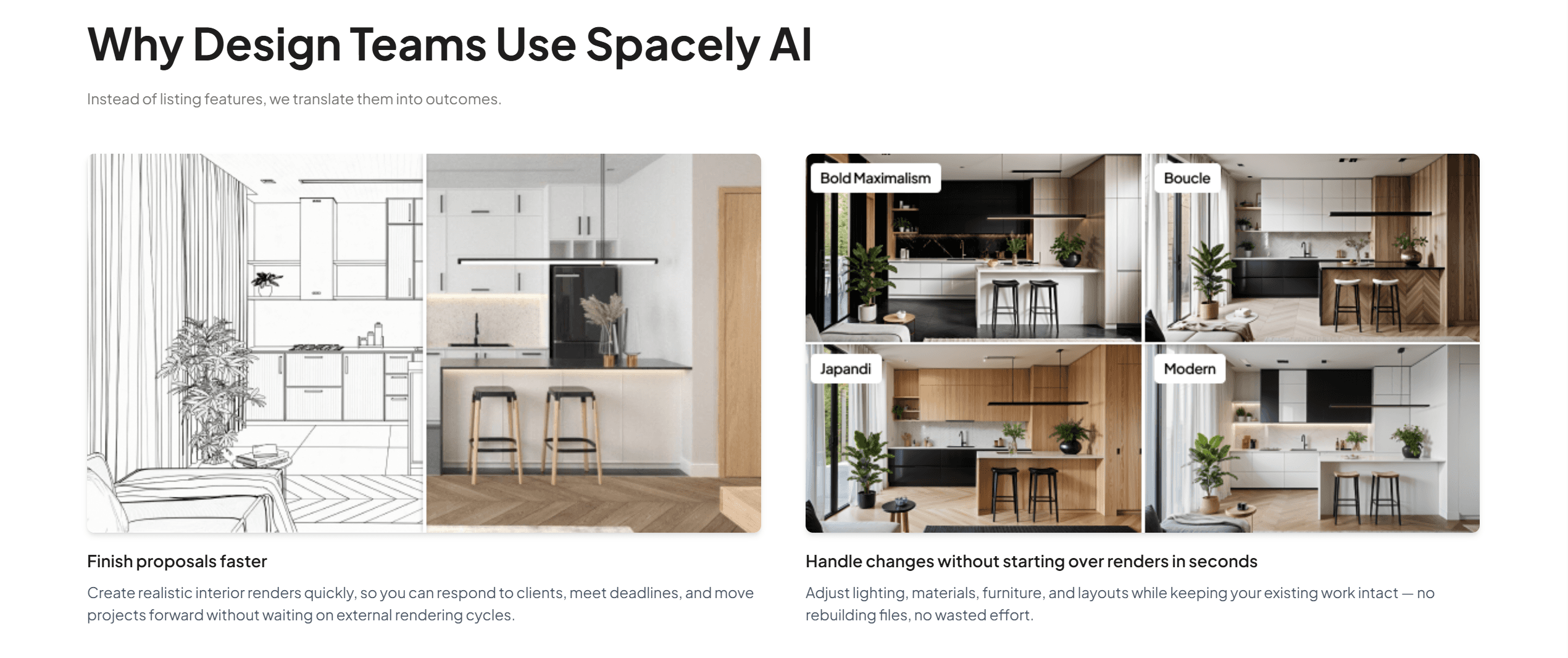 Alors que des outils comme Spacely sont excellents pour les remaniements rapides, Rendair est conçu pour soutenir l'ensemble du cycle de vie du design. En offrant un contrôle précis sur la composition et les matériaux, Rendair vous permet de prendre un concept d'un croquis grossier à une présentation vidéo finale et cohérente sans changer de plateforme. C'est la couche de fiabilité qui transforme l'IA de jouet en une ressource facturable.