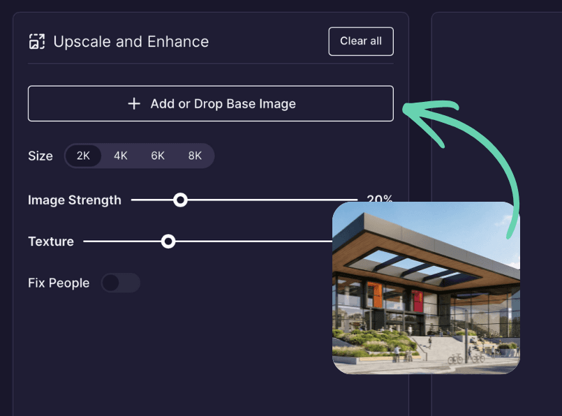 SketchUp est idéal pour la modélisation, mais les exportations peuvent sembler dentelées. rendair ai adoucit les bords et améliore la résolution des images SketchUp, leur donnant l'apparence de rendus haut de gamme.