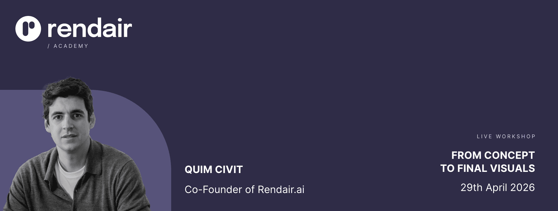 Dans « Workshop en direct | Comment commencer à utiliser l’IA en tant que designer d’intérieur » par Rendair Academy, vous verrez comment l’IA peut être intégrée à un projet de design d’intérieur, des concepts initiaux jusqu’aux rendus et animations finaux. Plutôt que de se concentrer sur des outils isolés, le workshop met l’accent sur les idées essentielles et la prise de décision, afin que vous repartiez avec une compréhension pratique de la manière d’appliquer l’IA avec confiance dans votre propre travail.