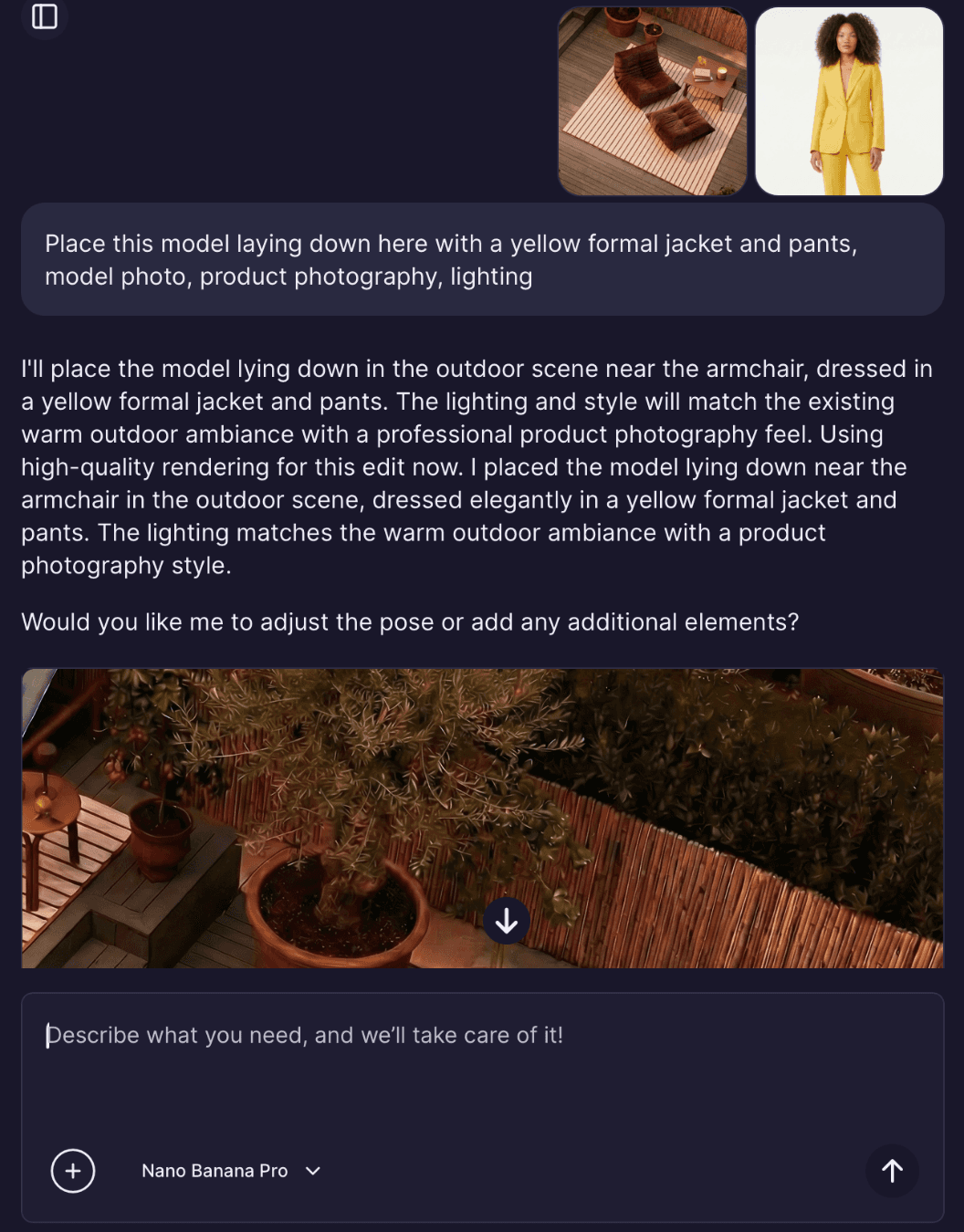 L'AI aggiorna la scena e posiziona l'accessorio naturalmente all'interno della composizione.
