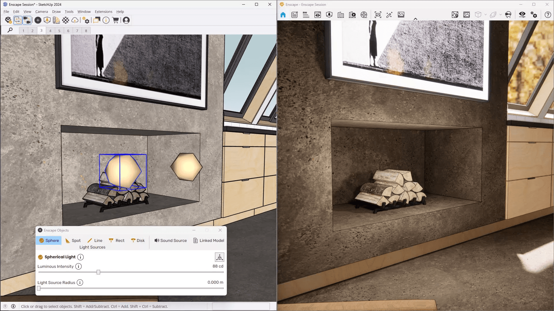 Sei in riunione con un cliente che vuole spostare una finestra e vedere come influisce sulla luce. Con Enscape, sposti la finestra in Revit/SketchUp e il cliente vede l’aggiornamento dell’illuminazione istantaneamente sullo schermo. Octane richiederebbe una riesportazione o un aggiornamento della geometria della scena, interrompendo il flusso della conversazione.