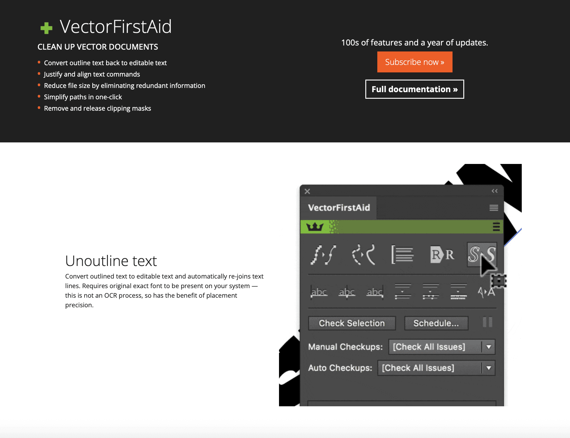 Architectural files are heavy. Imported plans often contain thousands of unnecessary anchor points, duplicate paths, and "ghost" data that slow Illustrator to a crawl. VectorFirstAid scrubs the file clean with one click.