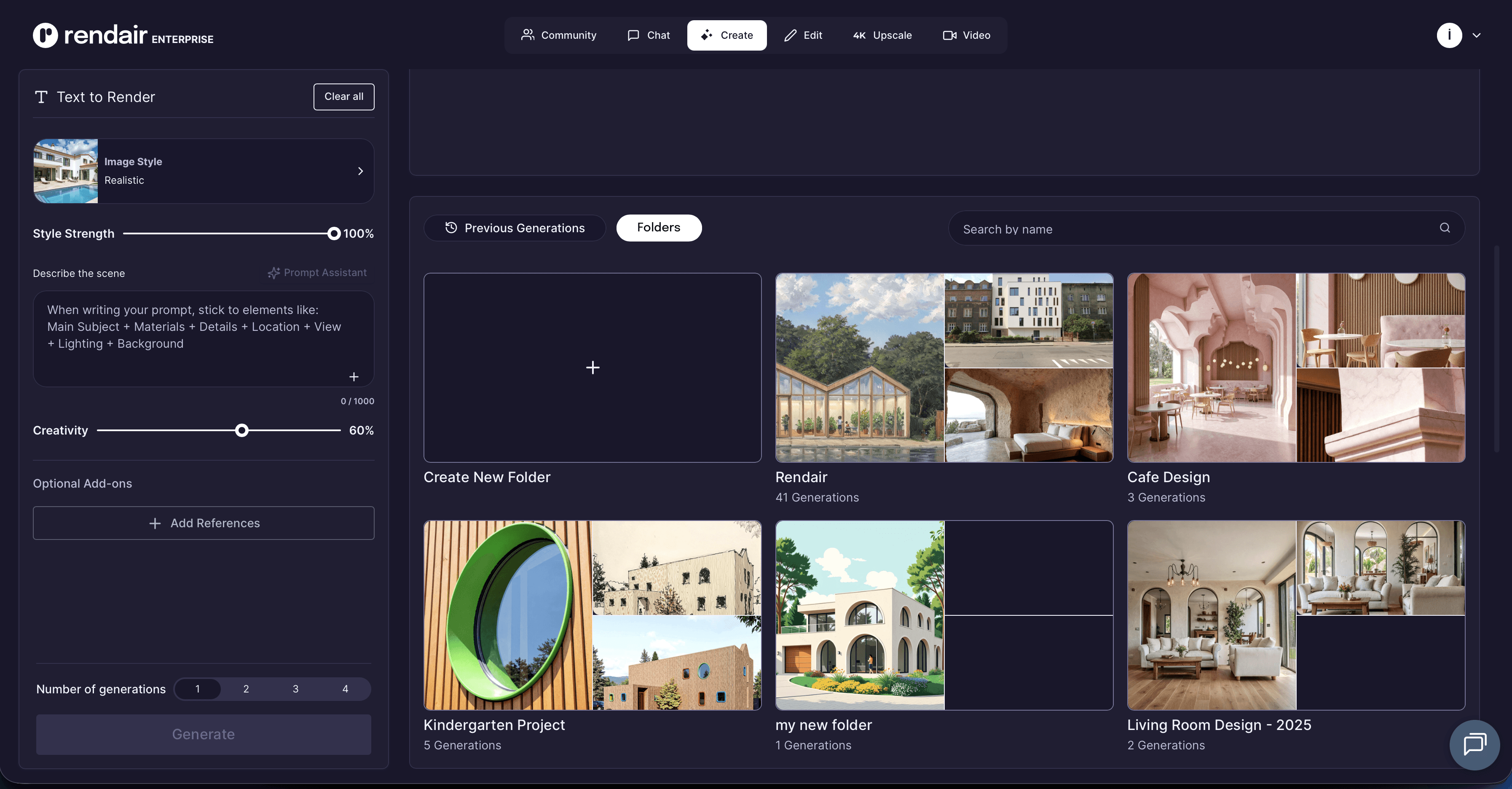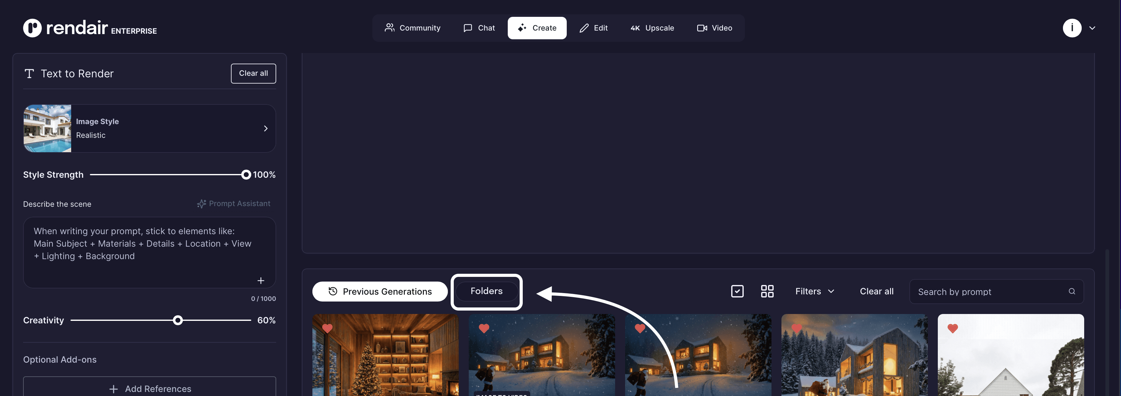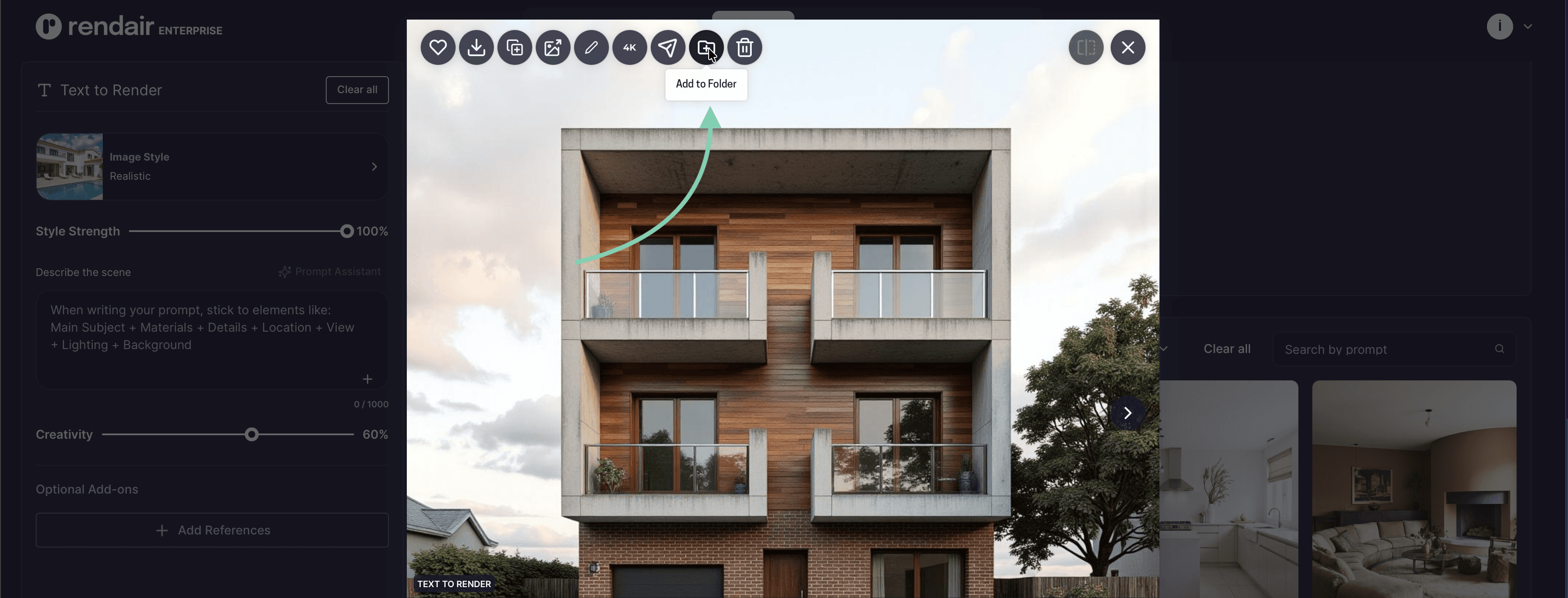Poiché Rendair AI offre spazio di archiviazione illimitato per gli abbonati attivi, gli utenti spesso generano centinaia di iterazioni per un singolo progetto. Senza organizzazione, trovare specifiche immagini ad alta risoluzione o schizzi iniziali nel feed principale della generazione può diventare difficile.