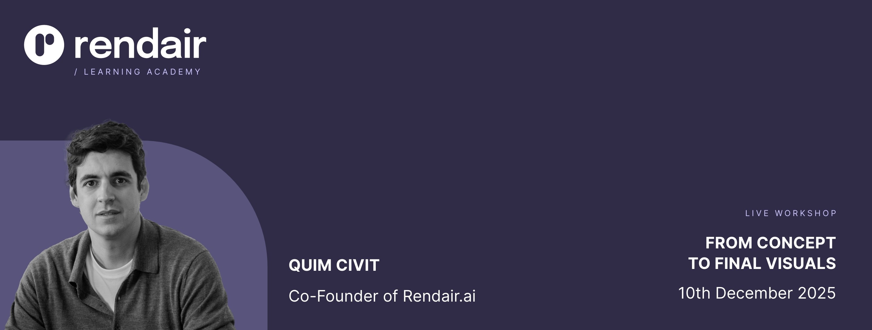You will learn how to integrate AI into your design process, work faster, communicate ideas more clearly, and stay confident and up to date with the latest tools. We will apply everything directly inside Rendair so you can improve the way you work the very next day.