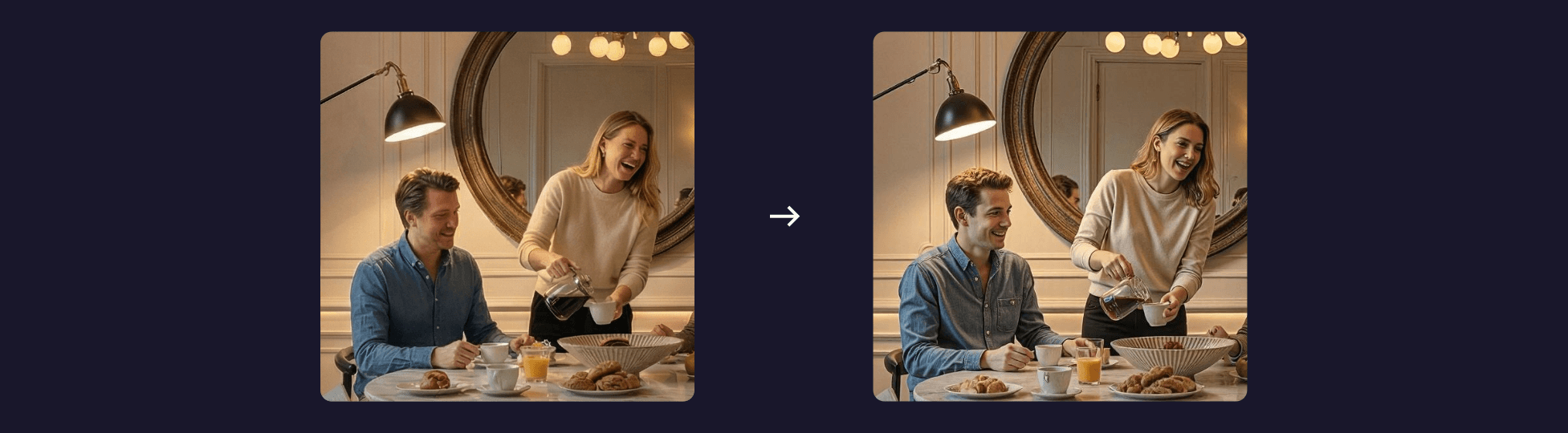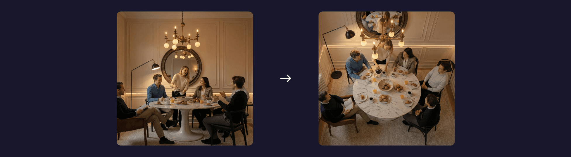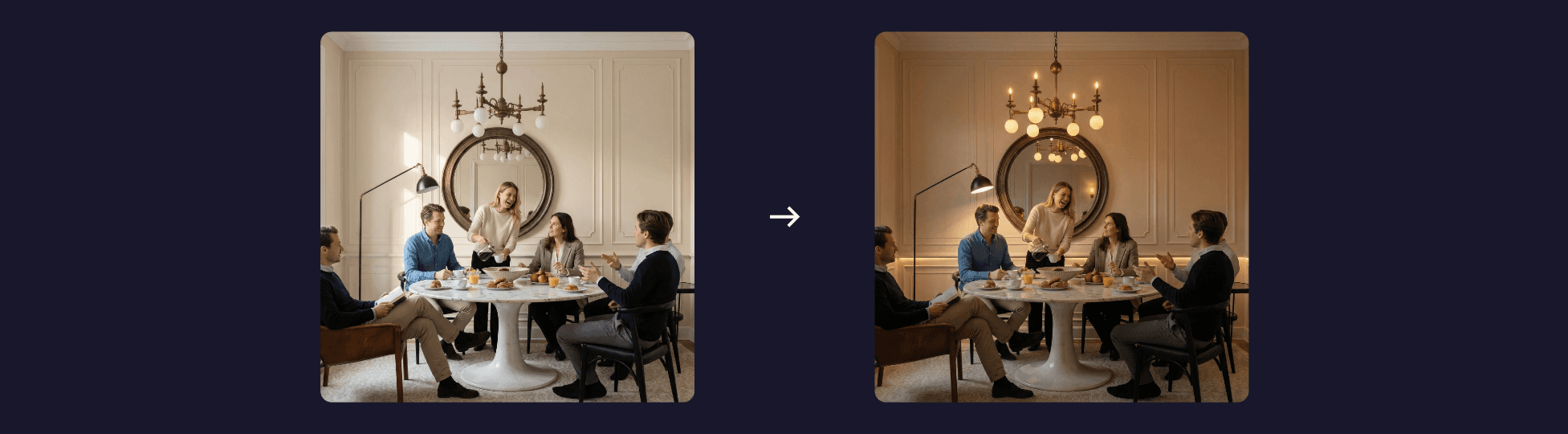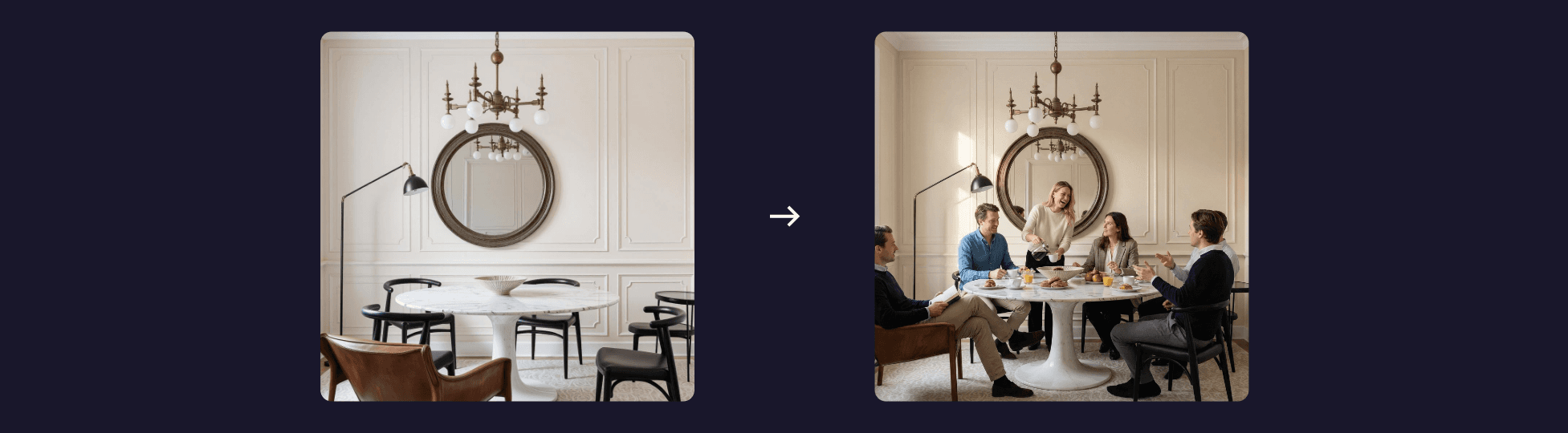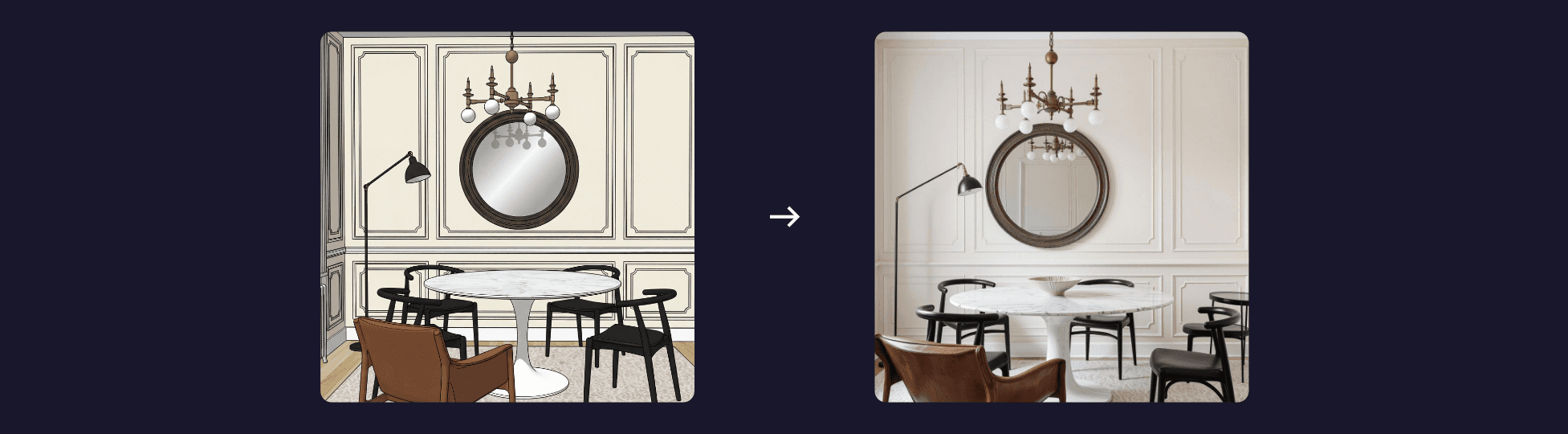 We improve the image together. Change materials, adjust lighting, add or remove objects and refine details.