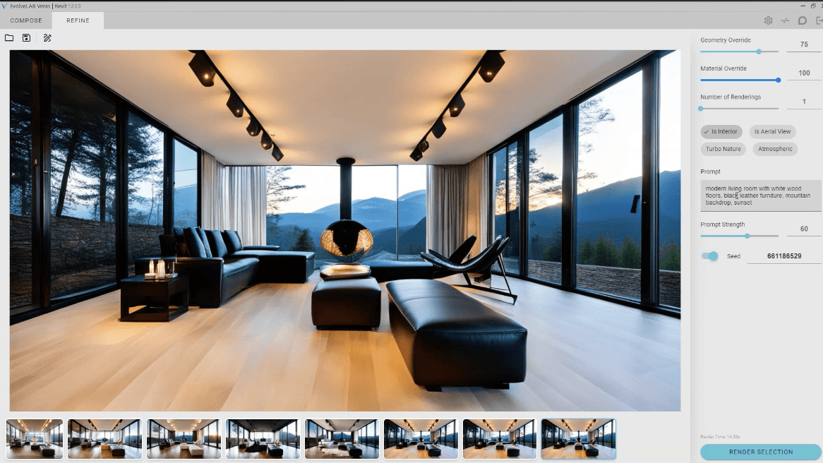 Specific Rendering Models: Includes models tuned specifically for interior design and architecture, reducing the chance of weird artifacts (like chairs melting into tables).