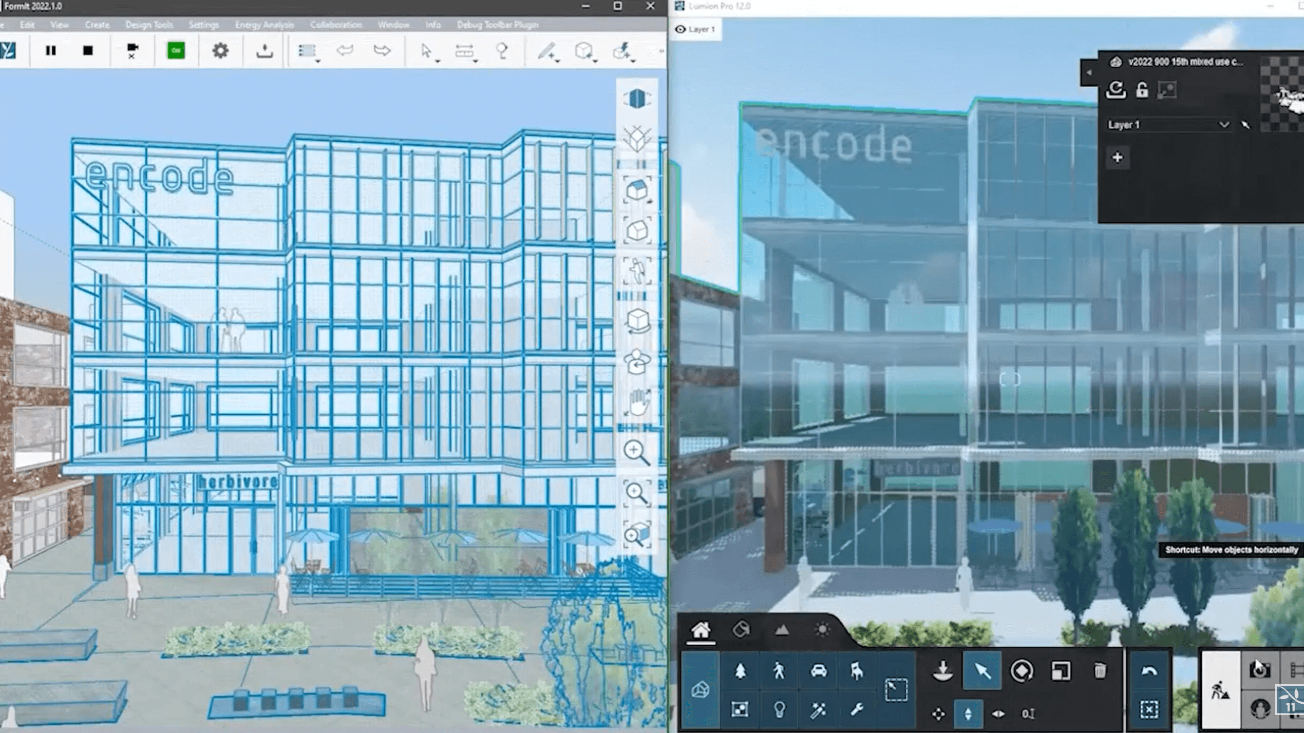 It creates a real-time, live link between FormIt and Lumion. Move a wall in FormIt, and it moves in Lumion instantly.