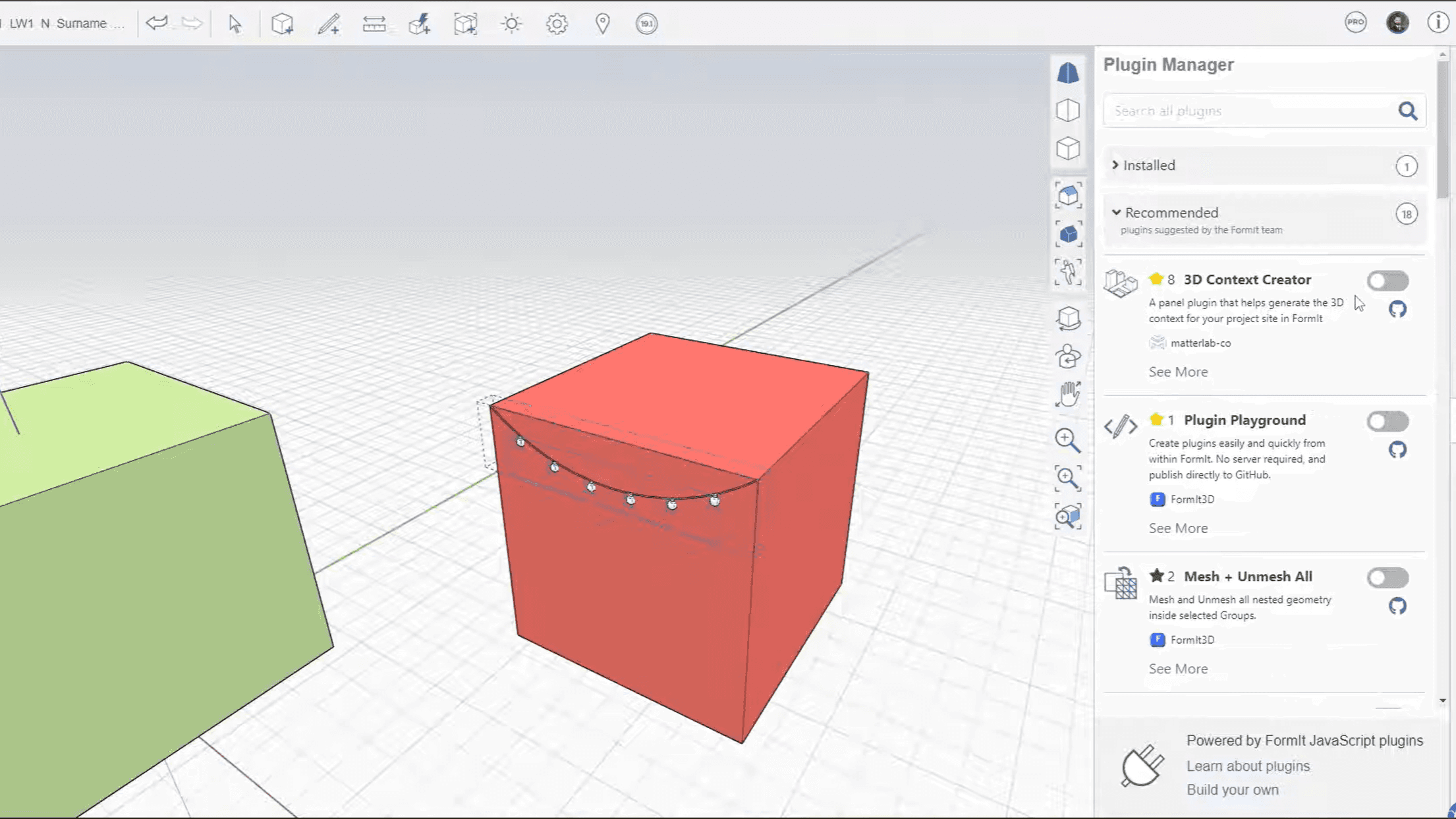 FormIt introduced a built-in Plugin Manager that connects directly to GitHub repositories. These are lightweight JavaScript extensions that solve specific modeling frustrations. You don't need to hunt for them online; you enable them directly inside the software.