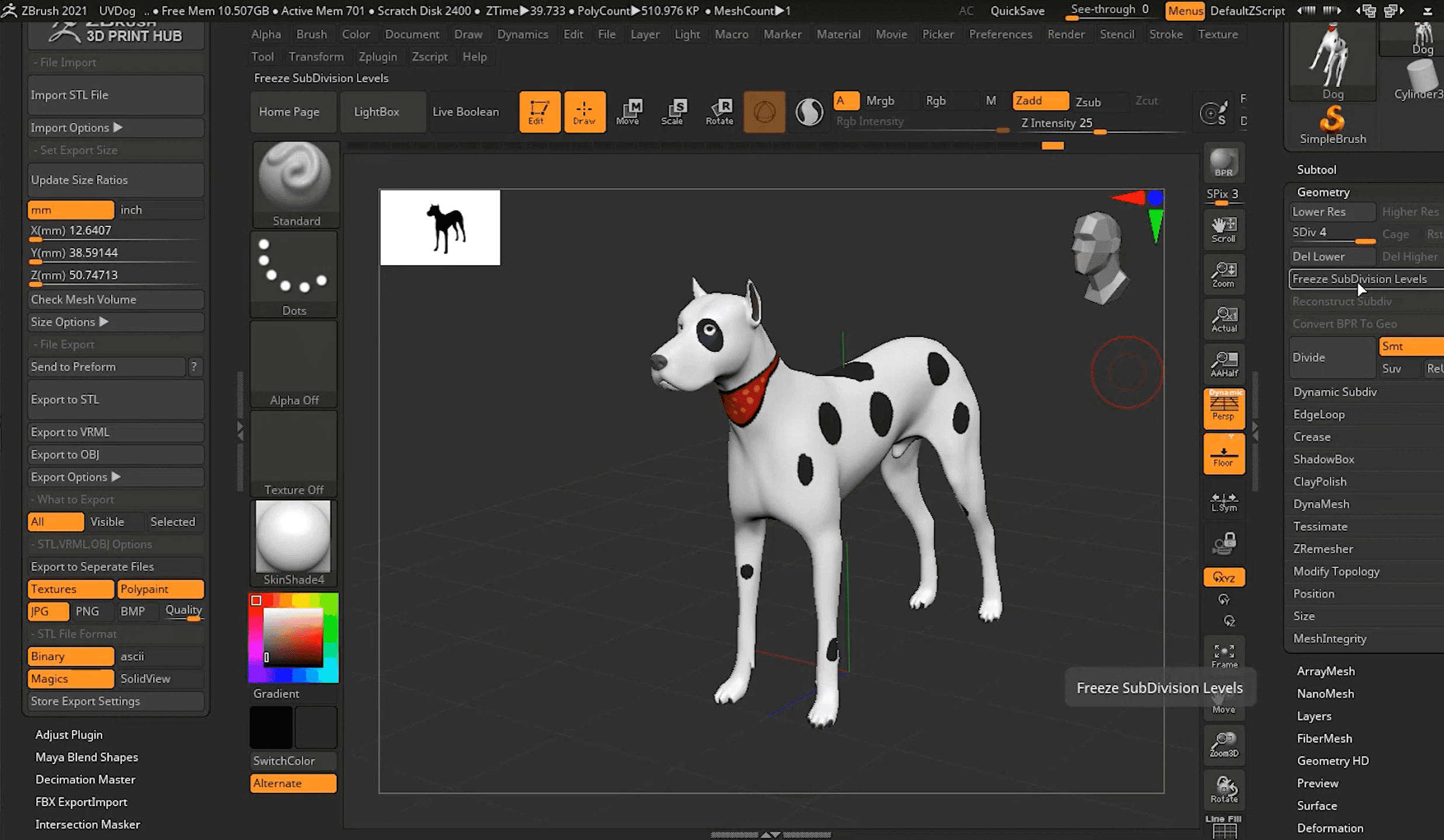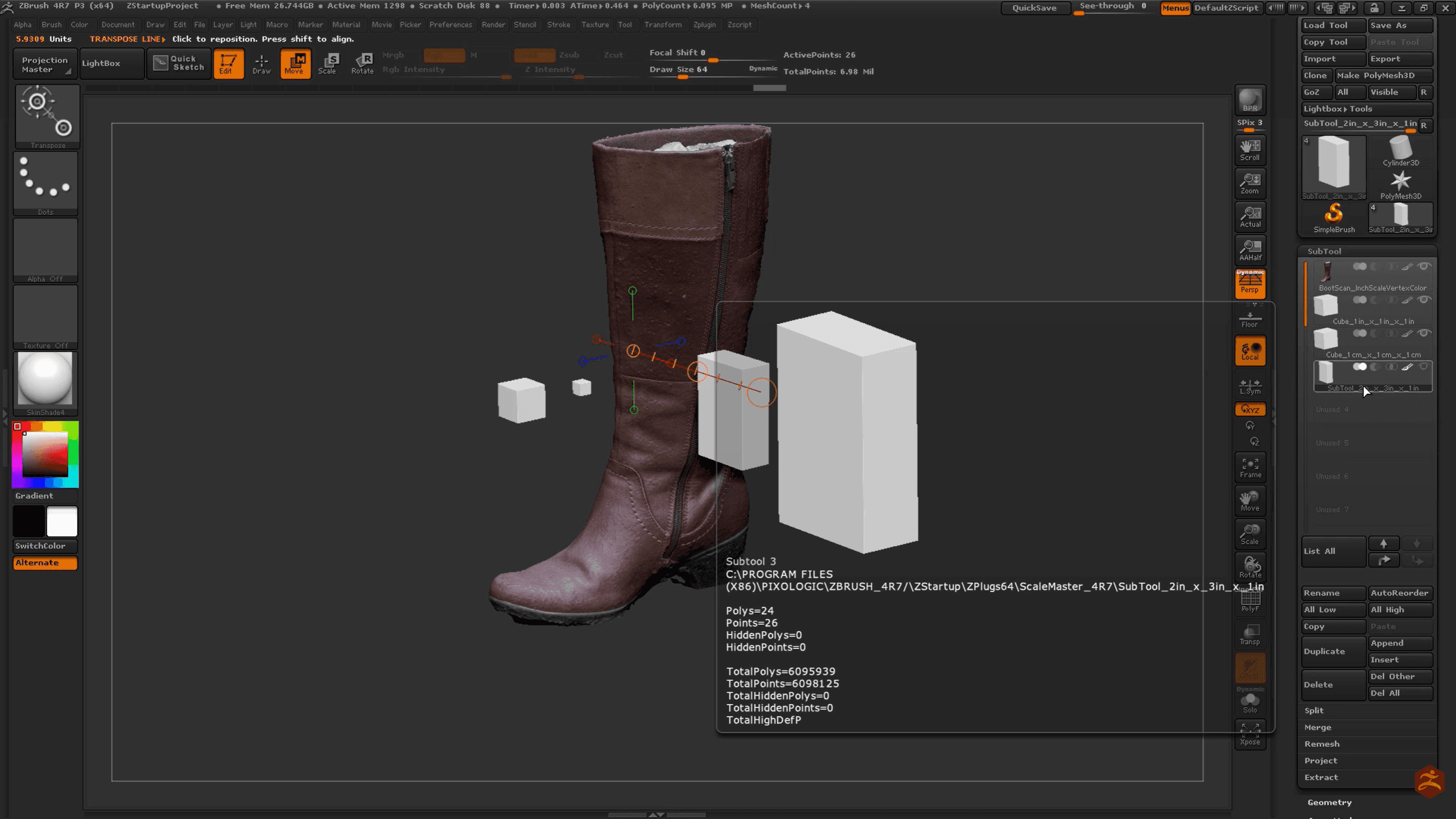 ZBrush não usa unidades de medida reais por padrão. Scale Master força isso.