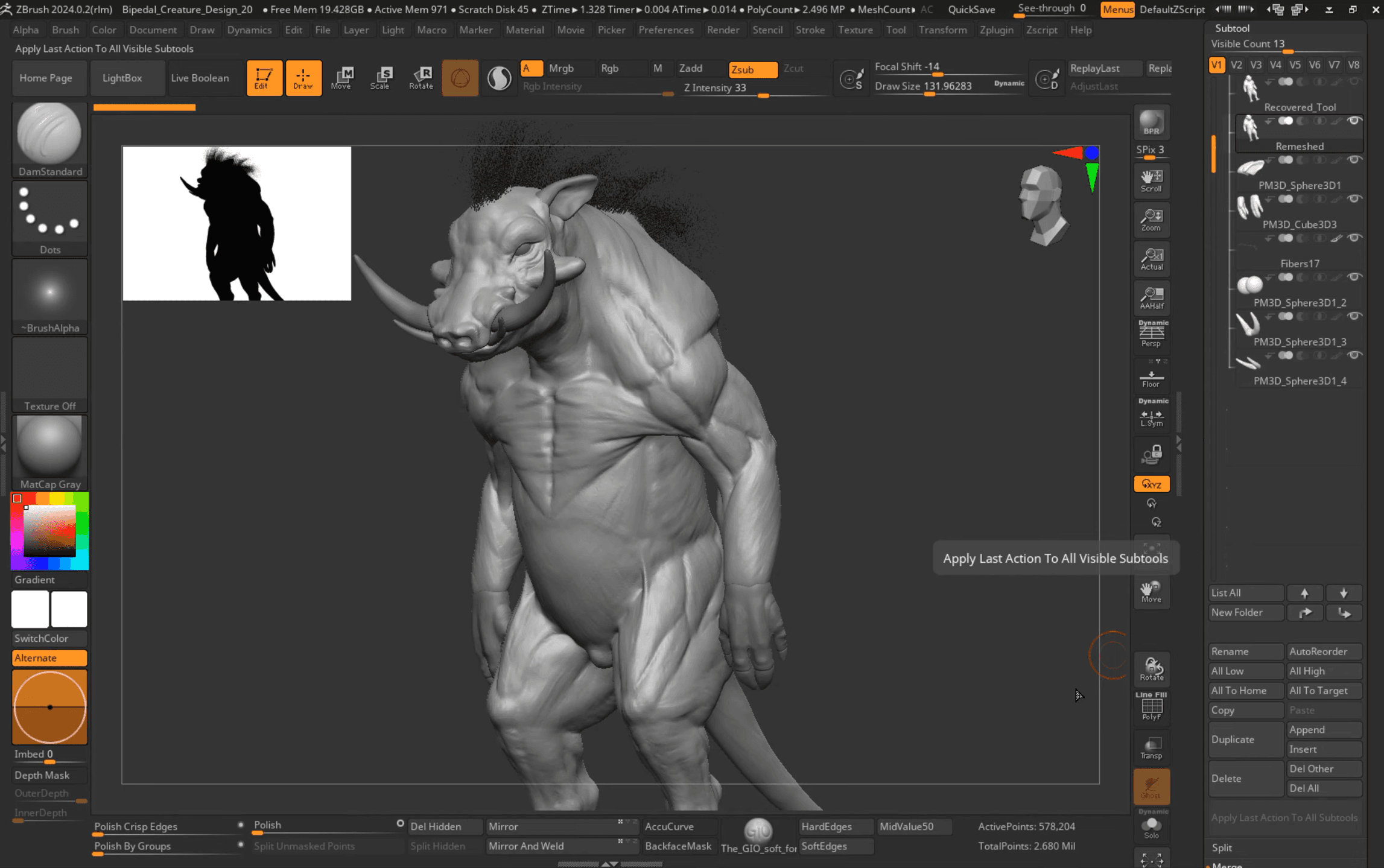 Este é o plugin mais crítico para qualquer pessoa lidando com mais de 20 "subtools". Ele substitui a paleta nativa SubTool por um estrutura hierarchical adequada semelhante ao Maya ou 3ds Max.