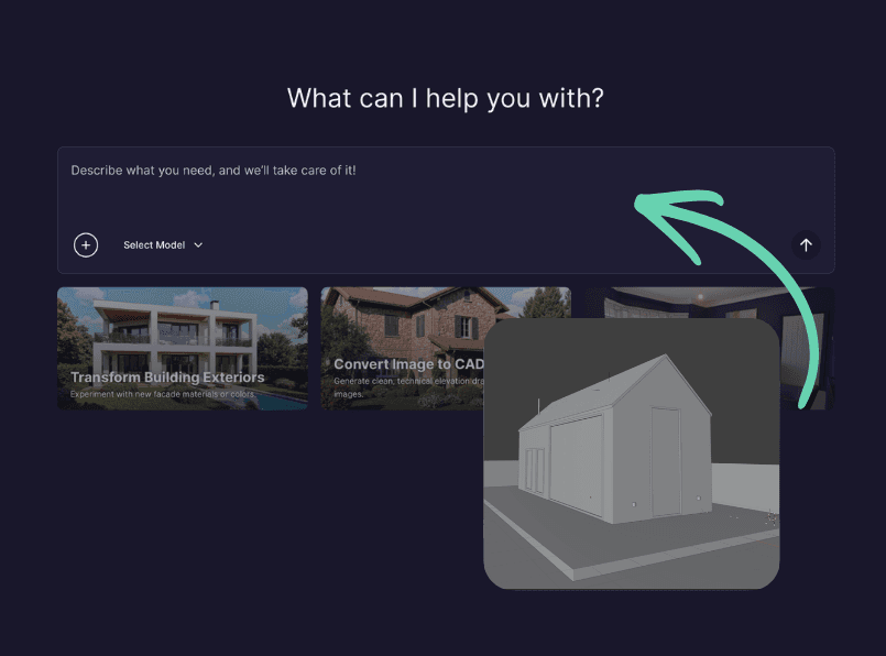 Upload your 3D base models and generate stunning photorealistic architectural renders instantly. No complex rendering software or hours of setup required.