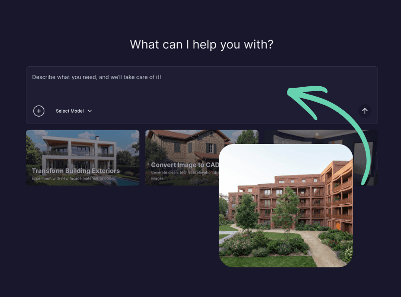 A bad sky ruins a good render. Swap dull, grey skies for vibrant blue horizons, dramatic sunsets, or starry nights with Rendair AI's sky replacement tool.