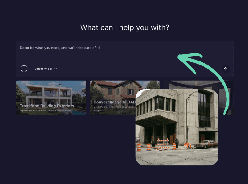 Clean up your shots. Remove construction cones, stray people, ugly cars, or clutter from your architectural photos and renders instantly.