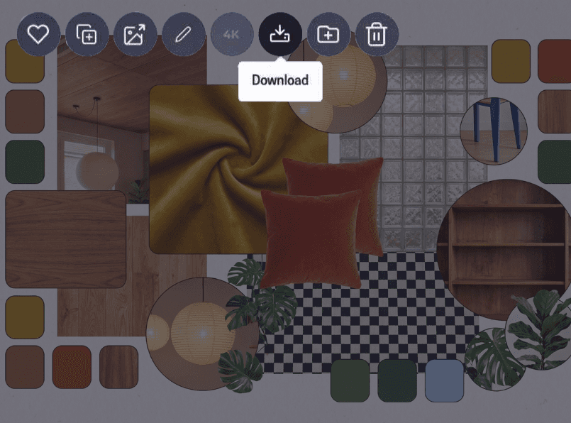 Love a render you saw? Rendair AI analyzes the image and breaks it down into a material and furniture palette, creating a moodboard for your projects.