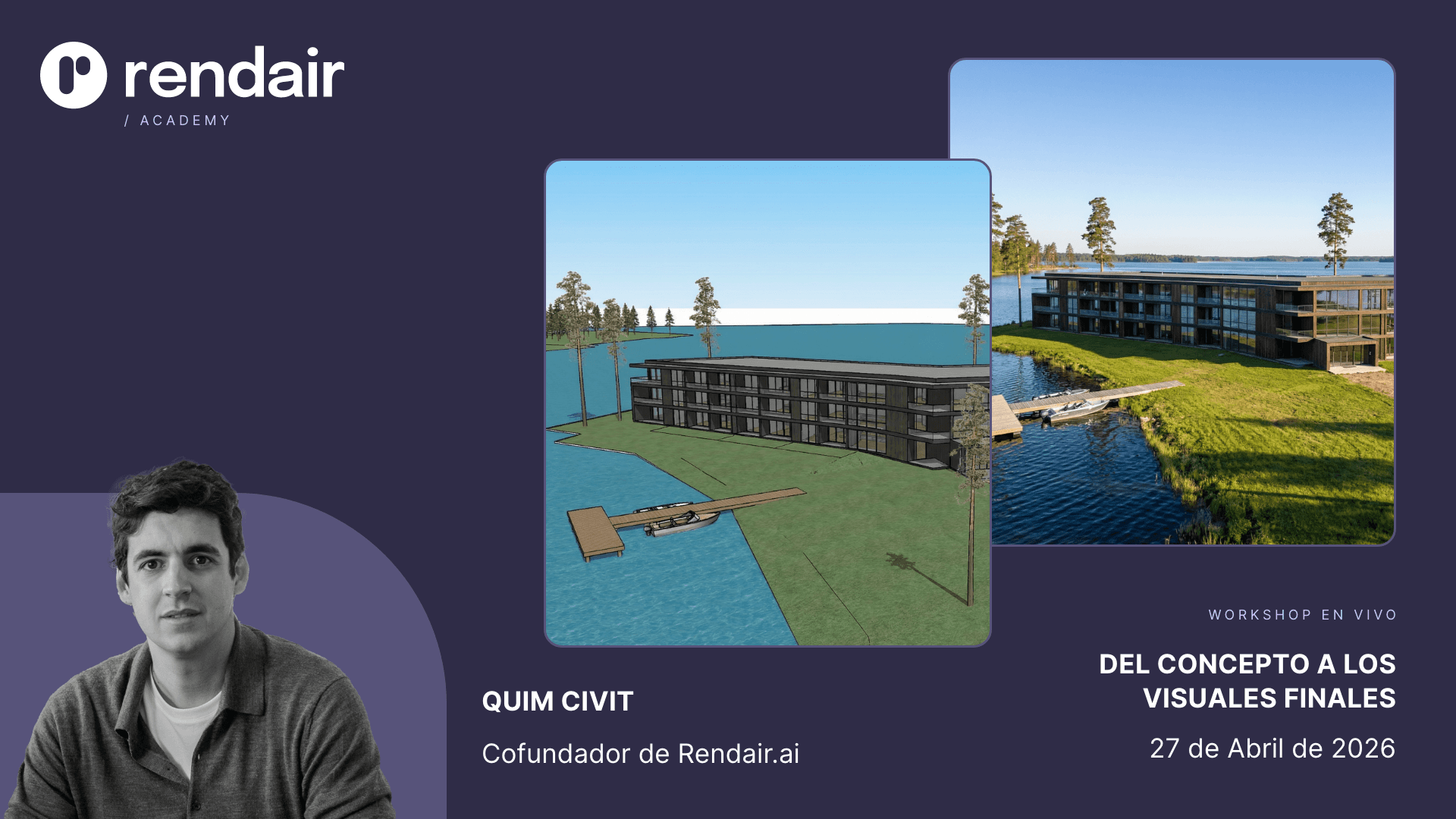 Who leads the workshop? The session is hosted by Quim Civit, architect based in Barcelona and co founder of Rendair.